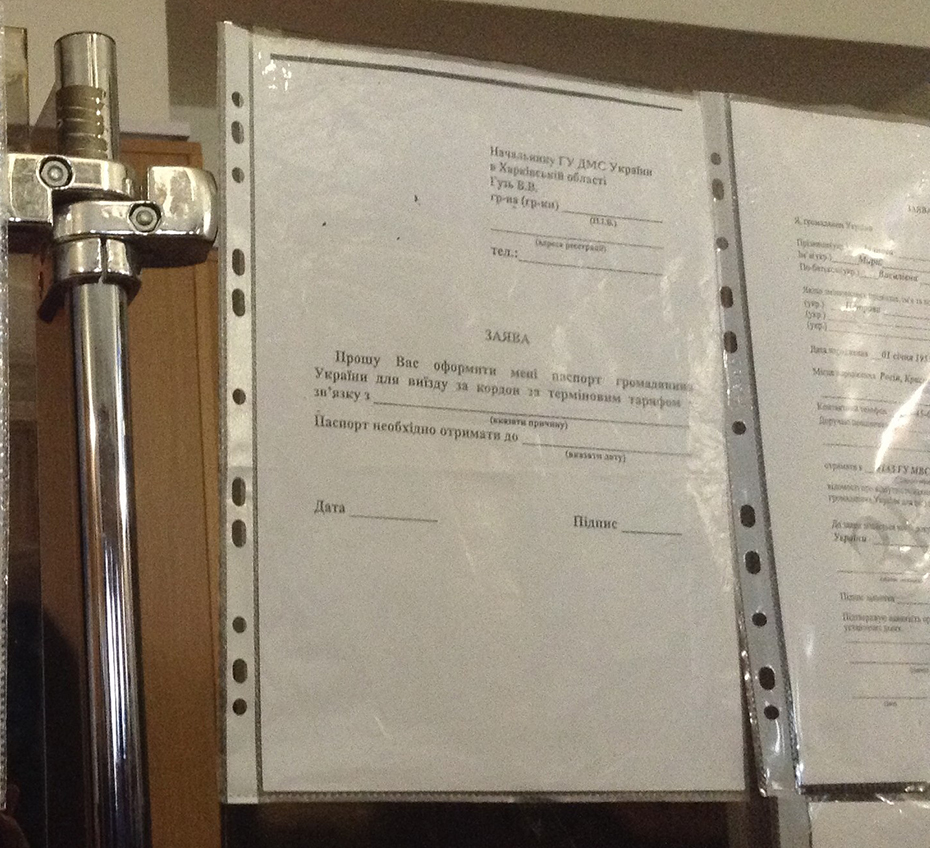 Согласно действующему законодательству, оформление и выдача паспорта для выезда за границу гражданам Украины (в том числе получение оцифрованных отпечатков пальцев рук) выполняется территориальными органами либо подразделениями ГМС независимо от места проживания гражданина. Среди подразделений ГУ ГМС в Харьковской области приём переселенцев из Донецкой и Луганской областей преимущественно осуществляется в секторе централизованного оформления документов №2 по адресу: г. Харьков, пр. Правды, 5. Но также жители других областей могут обратиться для оформления загранпаспорта в любое подразделение ГМС в городе Харькове или Харьковской области, где осуществляется прием документов. Перечень документов для жителей Харьковской области и других областей не отличается.