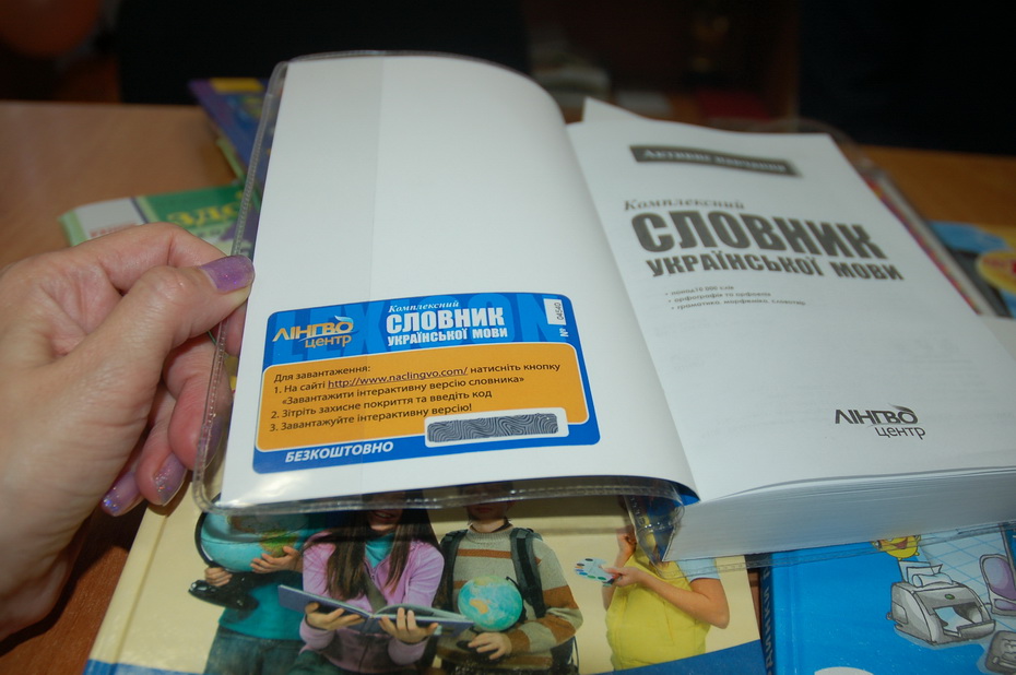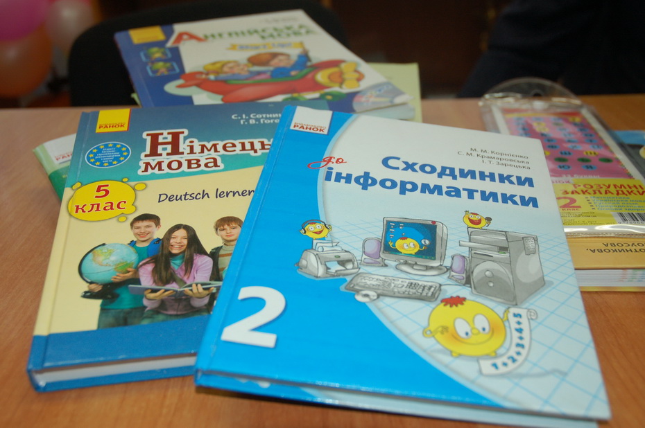Я не очень понимаю ситуацию. У нас около 700 наименований книг, которые рекомендованы или одобрены министерством. Гриф же даётся на пять лет. Потом, правда, нужно по новой всё согласовывать… Но у нас есть и свежее совсем. Вот, смотрите, «Сходинки до інформатики» в этом году этот учебник выиграл конкурс и был опубликован за счёт государства.