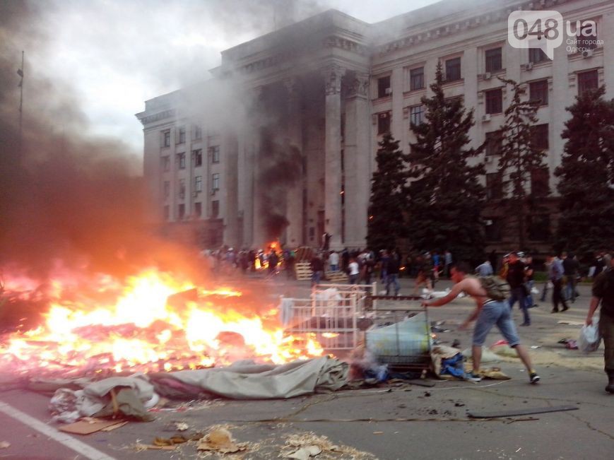 В центре Одессы подрались участники шествия за единую Украину и пророссийские активисты. К этой минуте известно о 35 погибших.