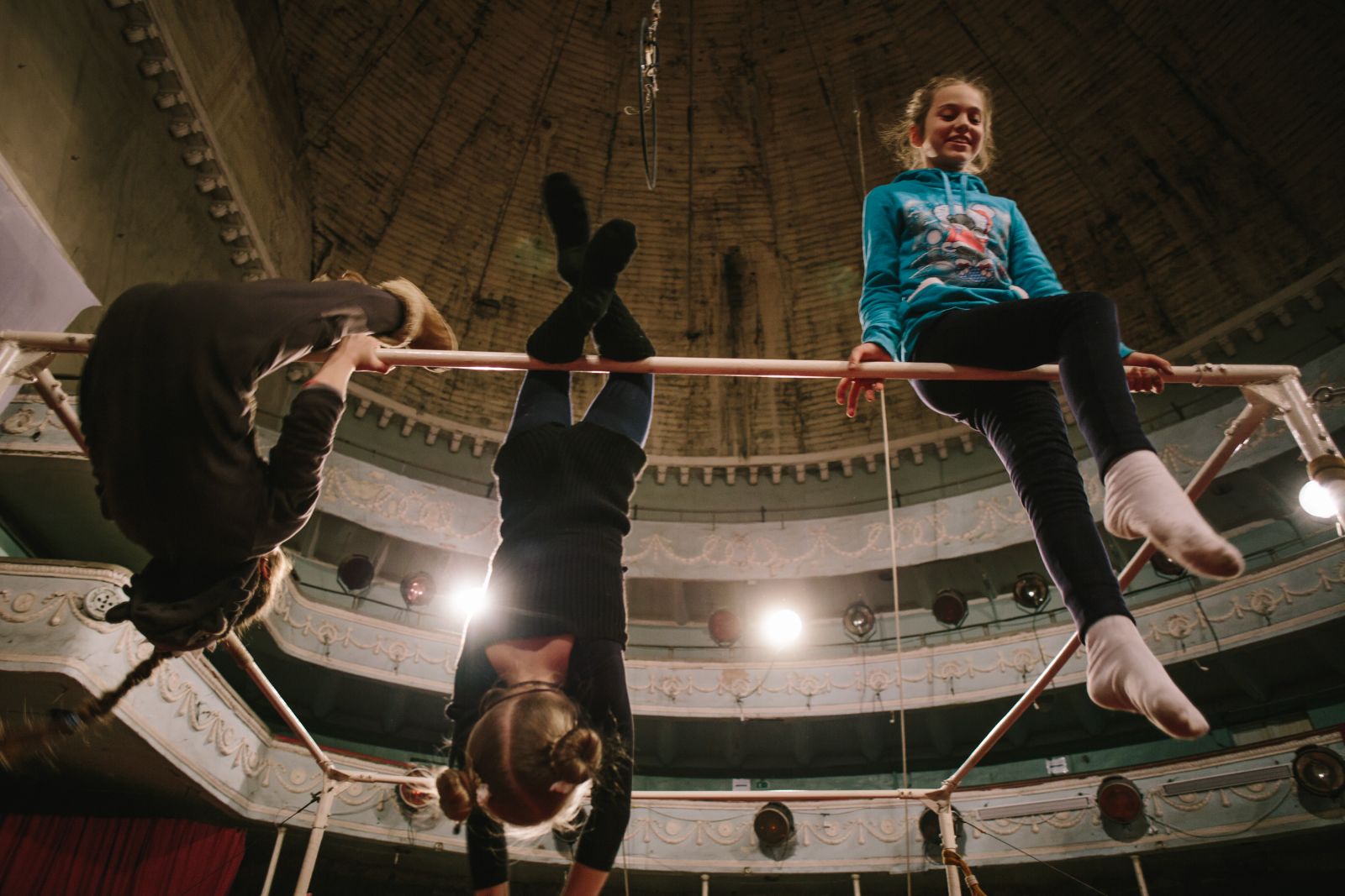 Прошло меньше часа, как от холода в Старом цирке у меня онемели пальцы. Ребятам приходится тренироваться здесь по несколько часов и выступать в лёгких костюмах.