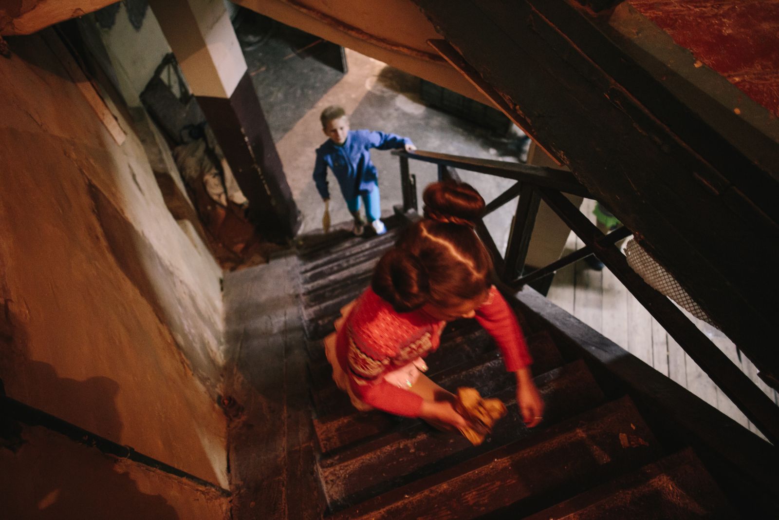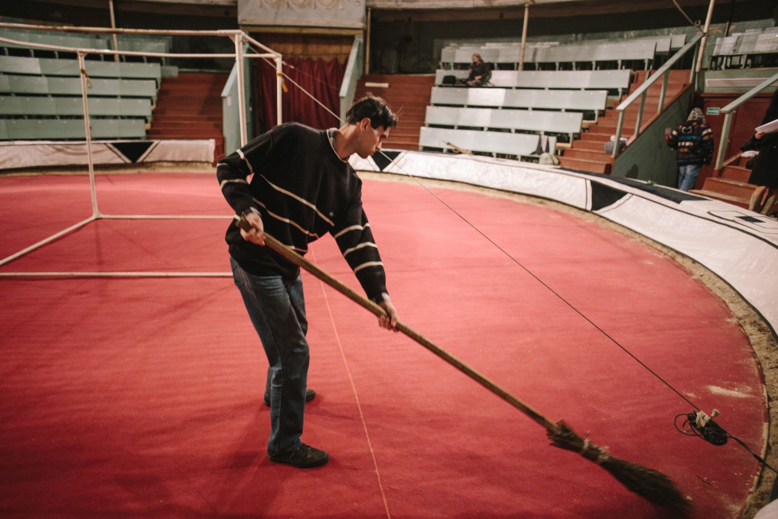 Обвалившаяся штукатурка, деревянные доски с щелями вместо пола, узкие проходы и тусклый свет в коридорах — состояние Старого цирка Сашу не пугает: