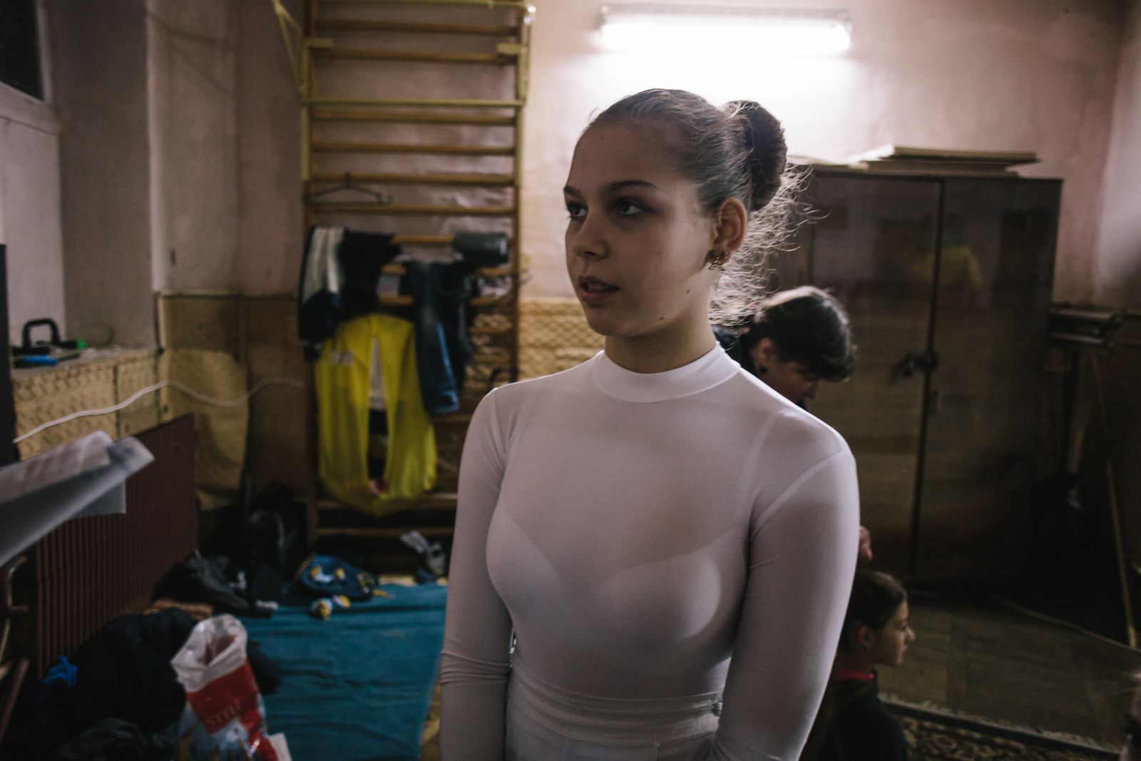 15-летняя Александра Калюжа ходит на занятия в детскую студию уже второй год. Из-за боевых действий семья Саши покинула родной Донецк: «Сначала мы переехали в Черкассы, но нам там совсем не понравилось. Родители всегда хотели в Харьков, а я не нашла в Черкассах подходящего места, где смогла бы заниматься — тренироваться я должна почти каждый день, чтобы не терять навыков».