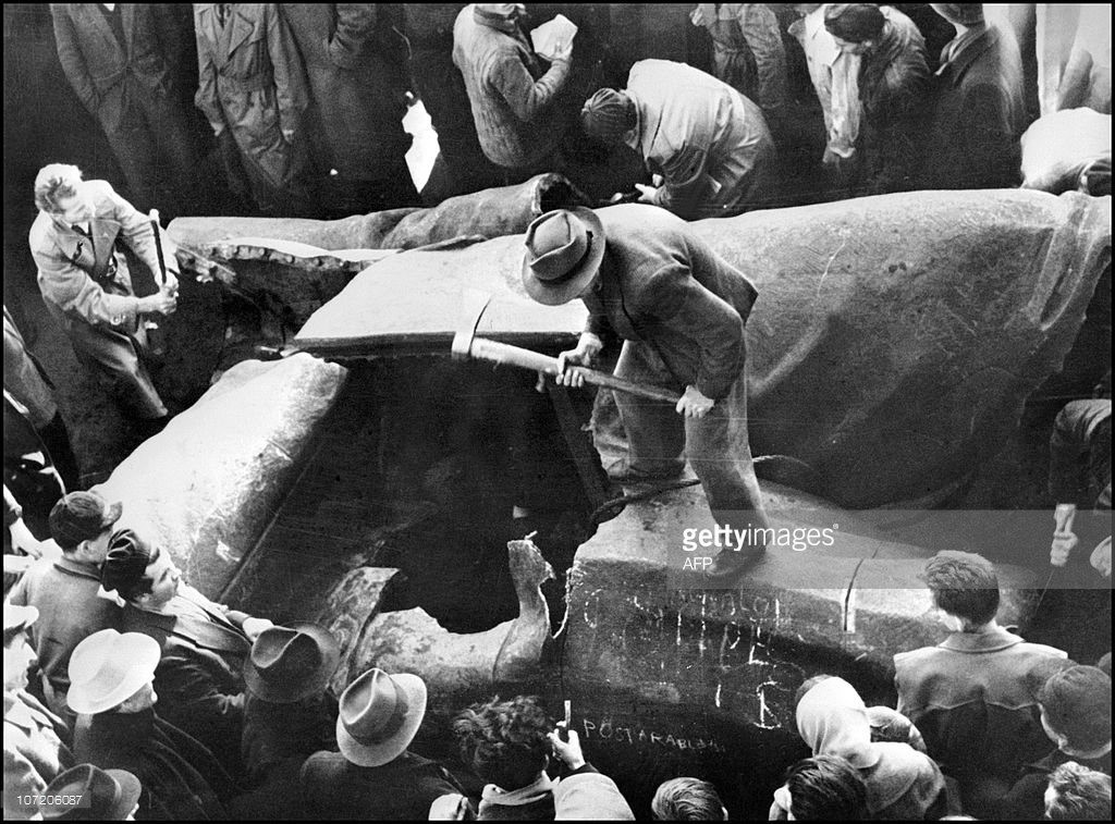 Результат сноса: один в один с харьковским. От cкульптуры тоже осталась только обувь — сапоги. Как и в Харькове, венгры водрузили в один сапог национальный флаг. А позже уменьшенную копию обуви Сталина воссоздали в парке Memento на окраине Будапешта.
