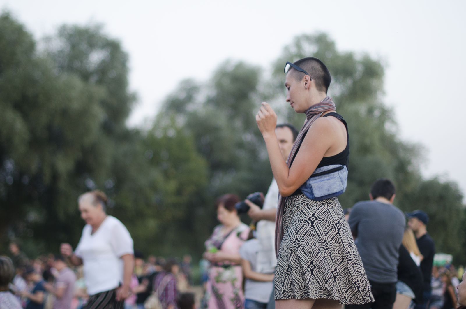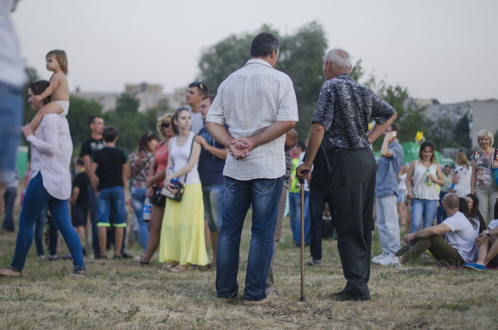 Попри спеку місцеві чоловіки приходять в ретельно випрасуваних класичних штанях і сорочках не надто яскравих кольорів. Жінки — в літніх та вечірніх платтях. Так парами вони виникають хто зі сторони річки, хто зі сторони села й гуртуються недалеко від сцени, гукаючи своїх дітей, що безтурботно й радісно розсипалися територією. Можна було б припустити, що зараз почнуться батьківські збори, якби не галаслива публіка приїжджих, яка повсідалася на траві й чекає на початок фестивалю.