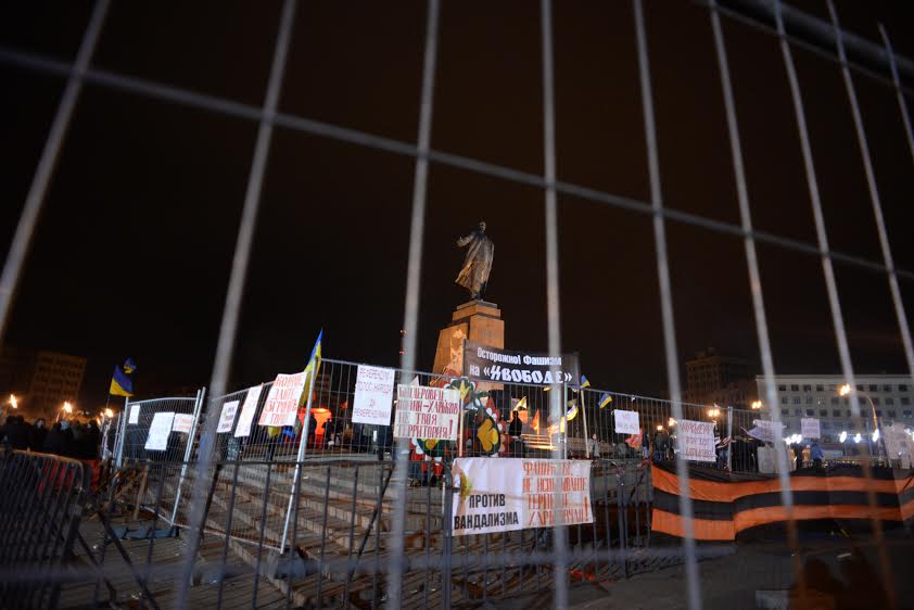 Многие из тех, кто стоит у памятника Ленину, считают, что майдановцы у обладминистрации — это люди, приехавшие в Харьков с Западной Украины «устанавливать свои порядки». Некоторые говорят, понимают, что среди майдановцев много и харьковчан, которые вышли показать свои убеждения.
