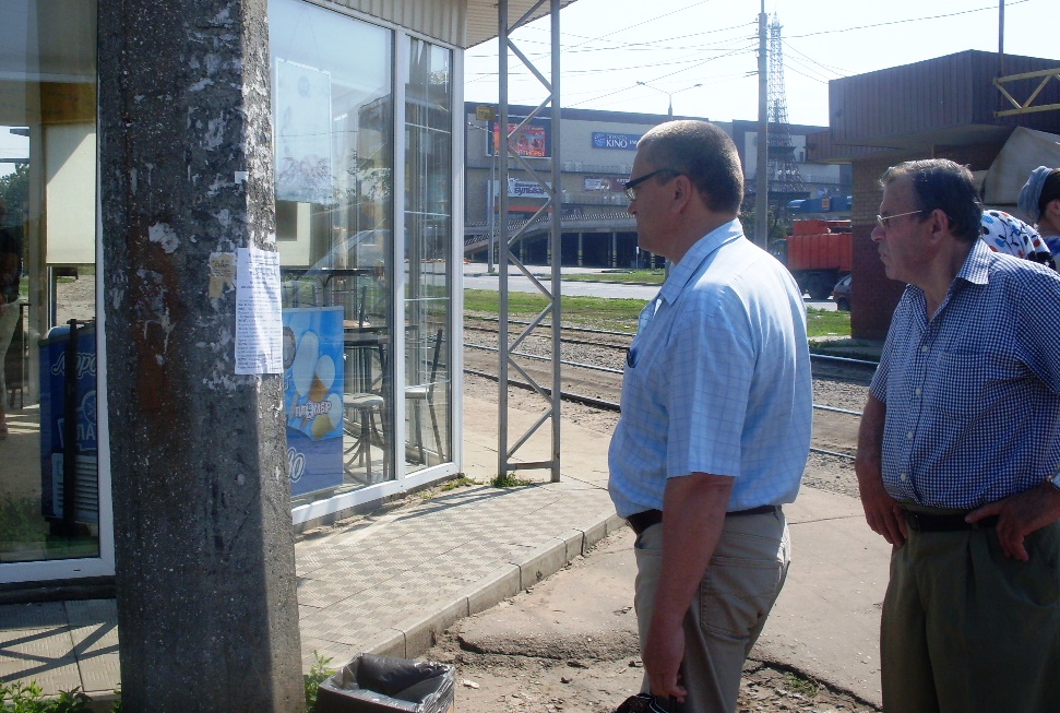 Люди, стоящие на трамвайных остановках, могли бы узнать о переменах из объявлений. Но листовки расклеены далеко не везде. Или же, как на остановке «Сабурова дача», объявление висит сбоку на столбе. Так что главным источником информации оказываются кондукторы.