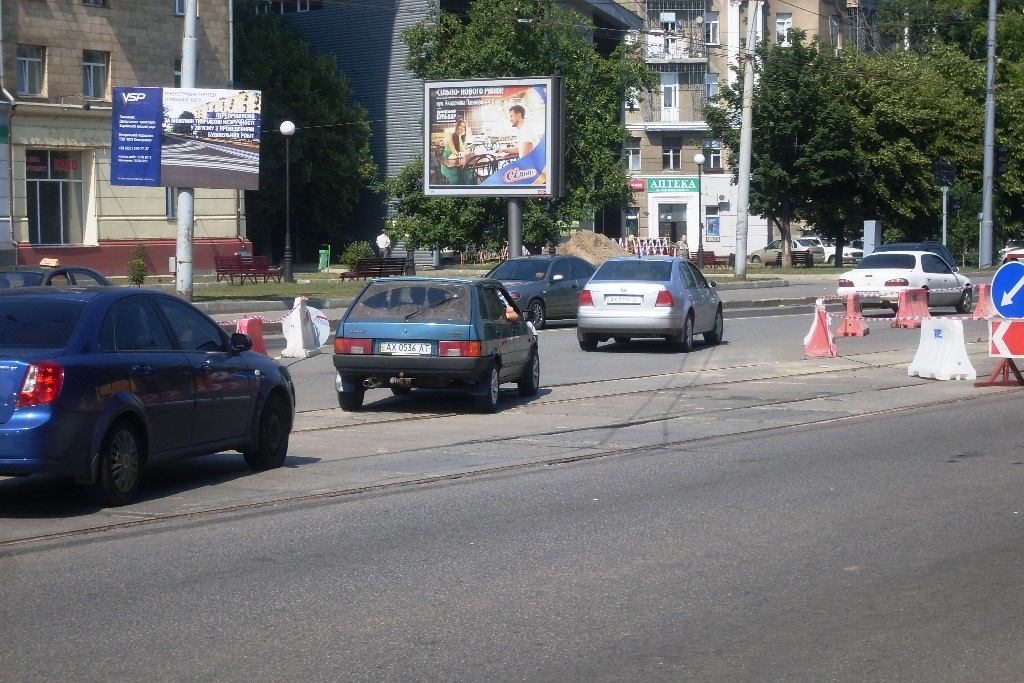 - По улице Академика Павлова с правым поворотом на Московский проспект, то есть в сторону универмага «Харьков», машины едут как обычно.