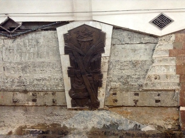 «Это плановые работы. Снимают мрамор, который, скажем так, сейчас не в эстетической форме», — говорит заместитель генерального директора по эксплуатации Харьковского метрополитена Владислав Теренко.