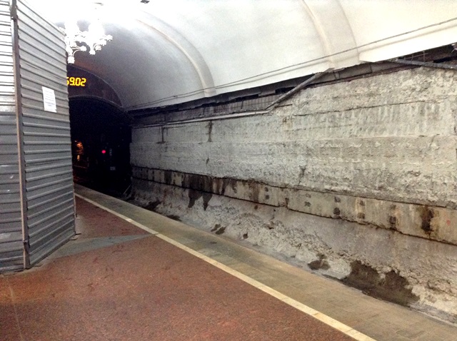Без облицовки остался участок на одной из стен. На «языке» метрополитена эта часть станции называется путевая стена.