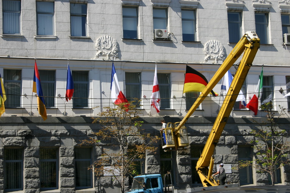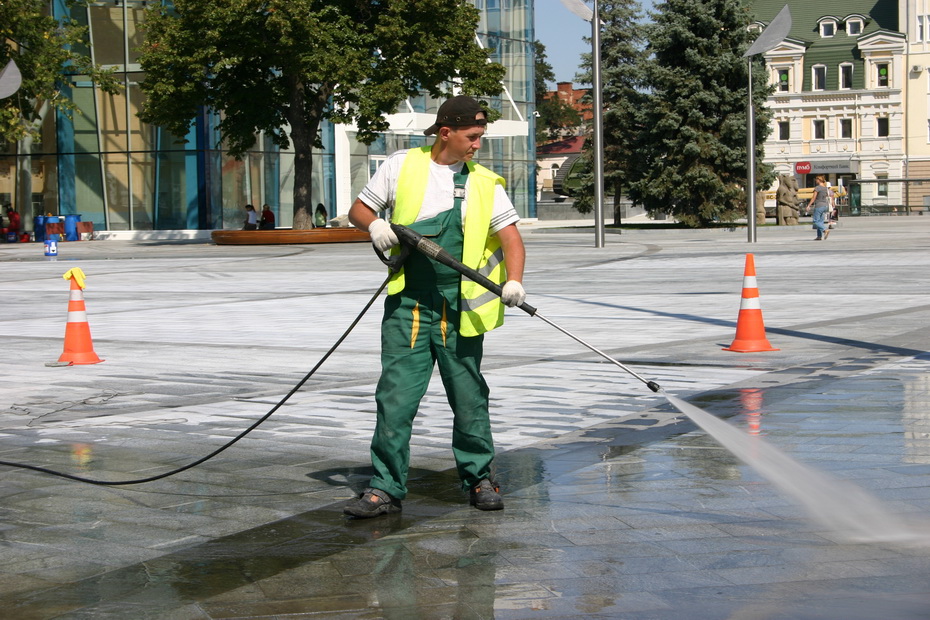 Ко Дню города и приезду президента Украины Виктора Януковича в Харькове моют центральные площади.