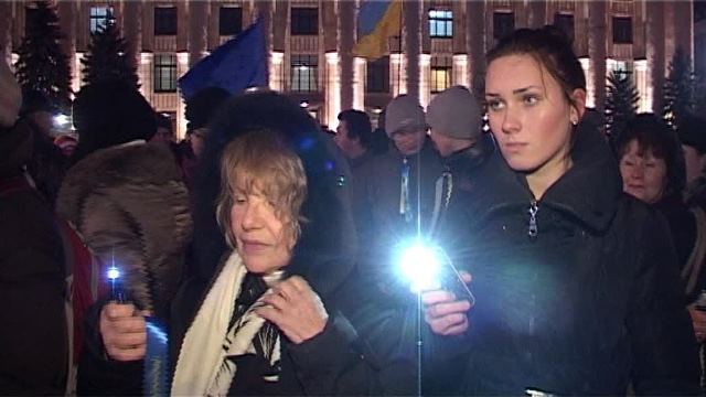 Активисты харьковского Евромайдана принесли на площадь фонарики и зажигалки.
