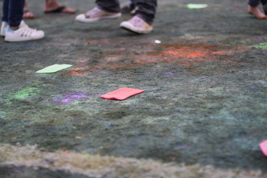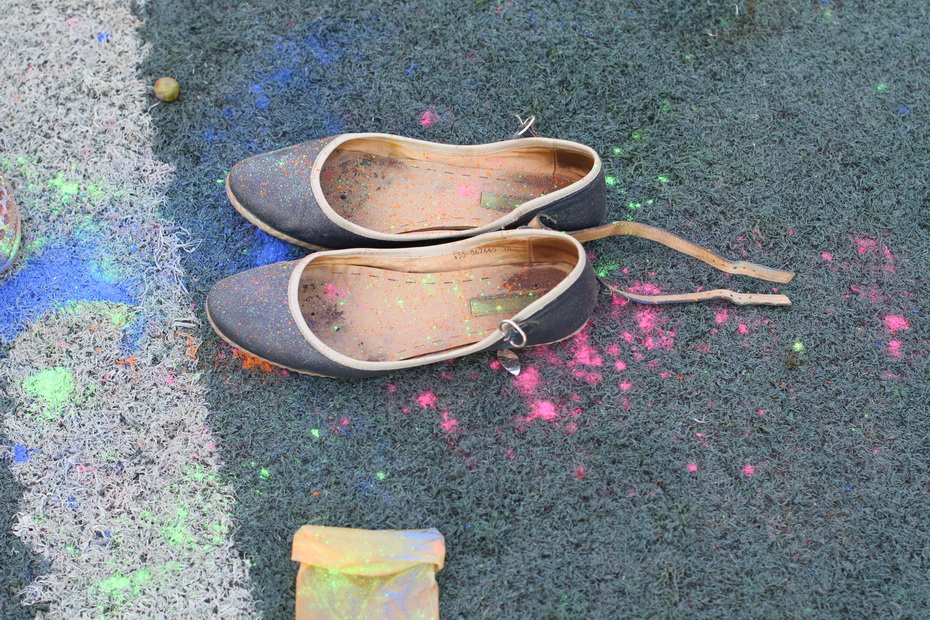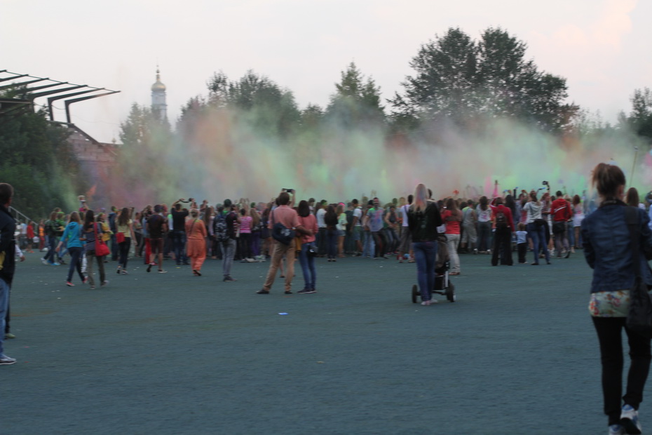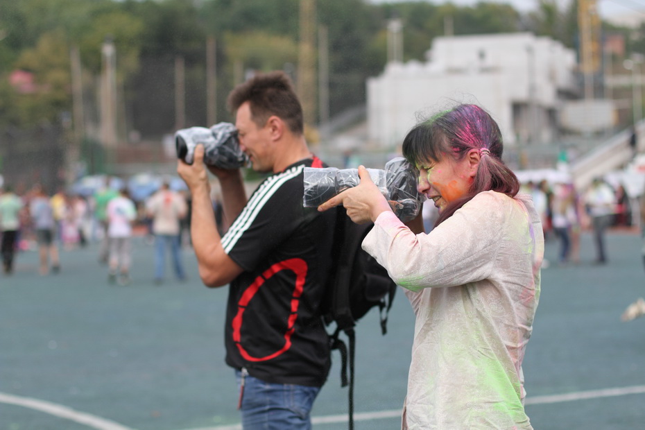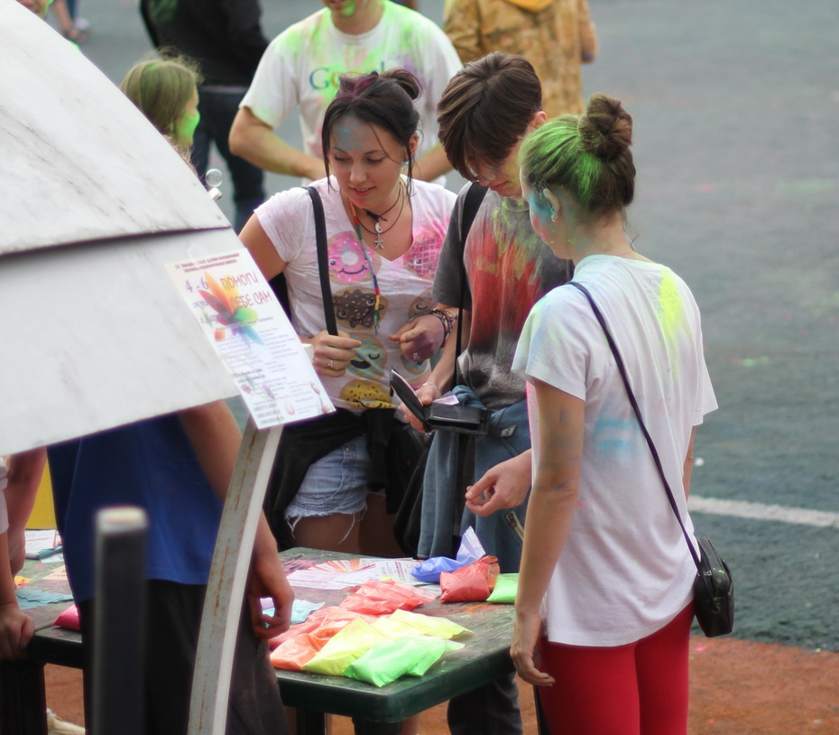 Самый главный атрибут фестиваля — краски — организаторы покупали заранее. Рассчитывая, что придёт несколько тысяч гостей, привезли 250 килограммов цветных порошков. Но на фестиваль пришли несколько сотен, сетует Екатерина.