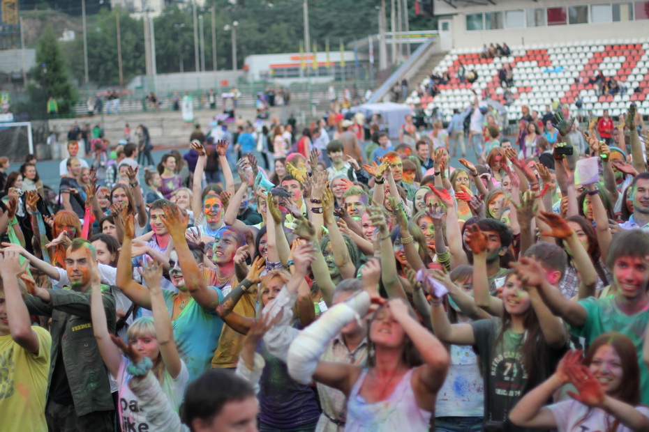 Вместо футбольных матчей на стадионе «Арсенал» — «красочные бои». Последний день лета на поле стадиона прошёл индийский фестиваль красок «Holiwood».