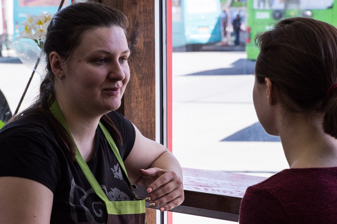 «Я нормальный кофе раньше не пила, любила «три в одном». Сейчас я такое вообще не пью! Поняла, что есть культура кофе», — рассказывает Оксана Яровая. Уже почти месяц она осваивает профессию бариста — варит кофе для посетителей блинной возле метро на Салтовке.