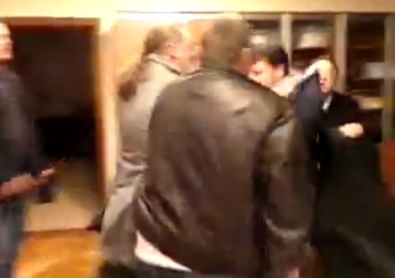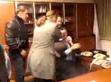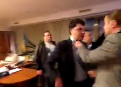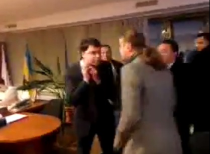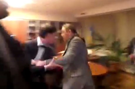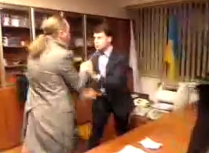 Всё, что происходило до и после захода в кабинет, снимал на видео известный в Киеве «стример» Александр Аронец. Он отвечает за связи с общественностью в Киевской городской организации ВО «Свобода».