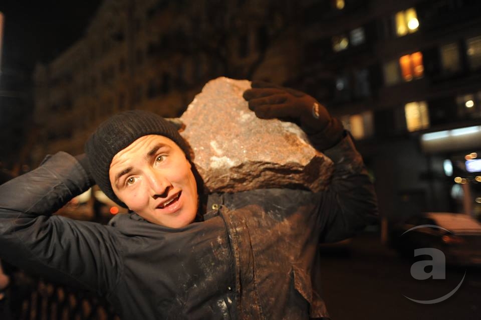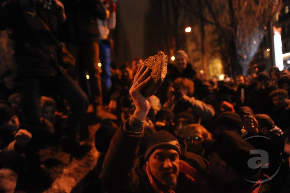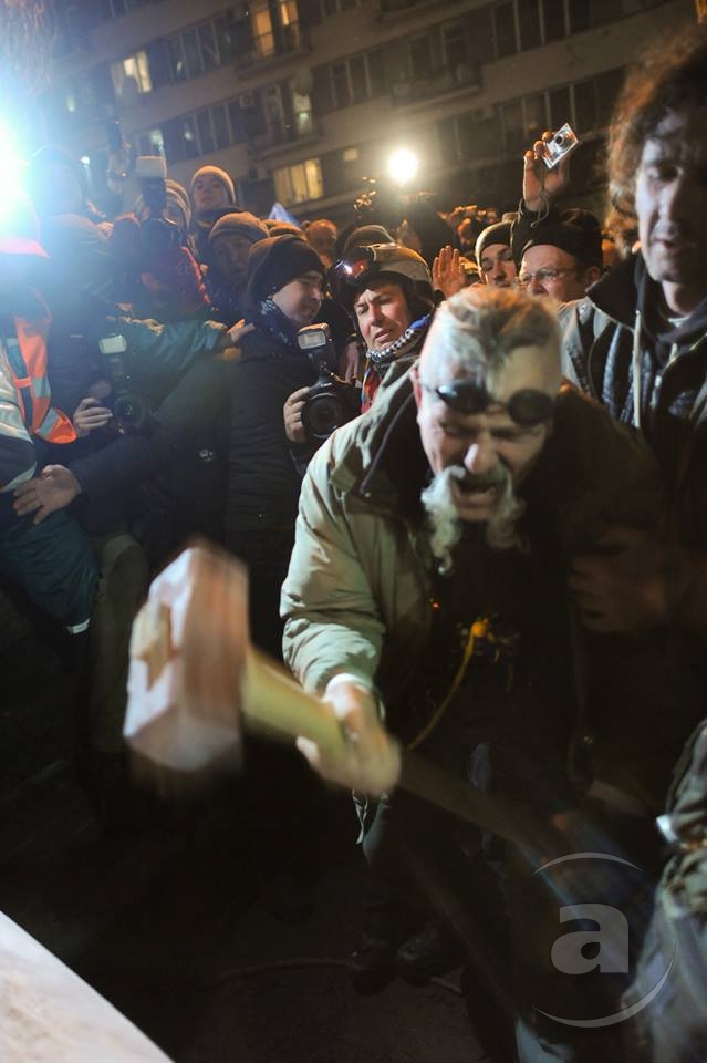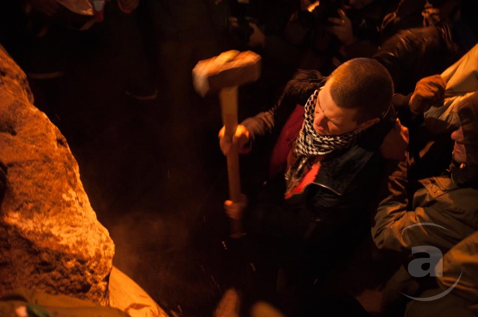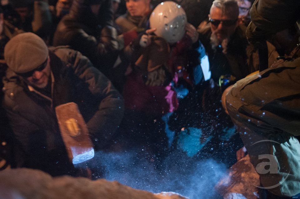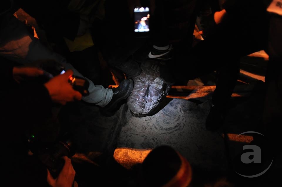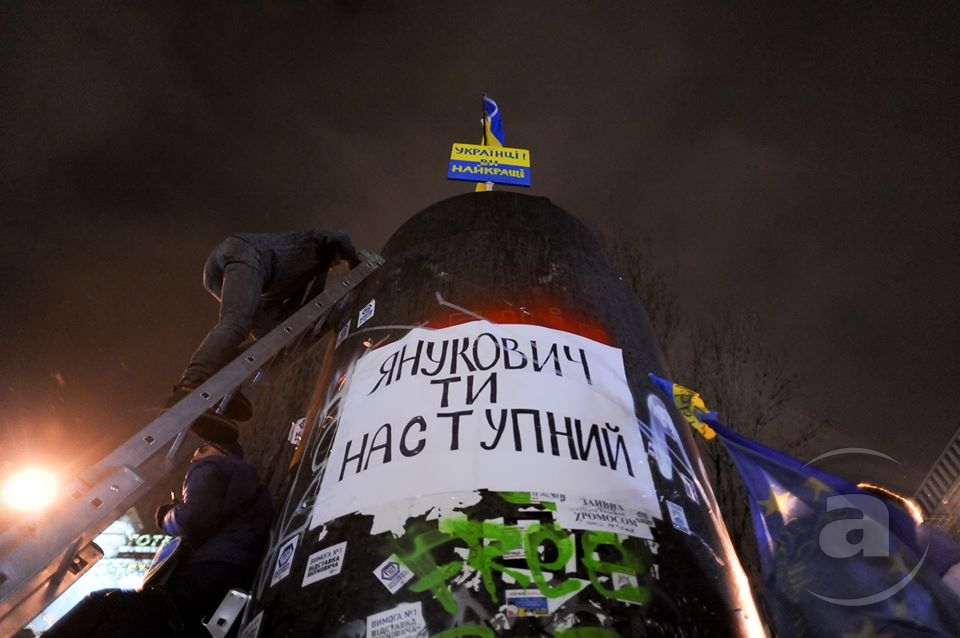 Памятник Ленину в Киеве упал с постамента за десять секунд. После — те, кто снёс памятник, ушли — и началась другая «акция». Не меньше шести часов люди делили Ленина на части.