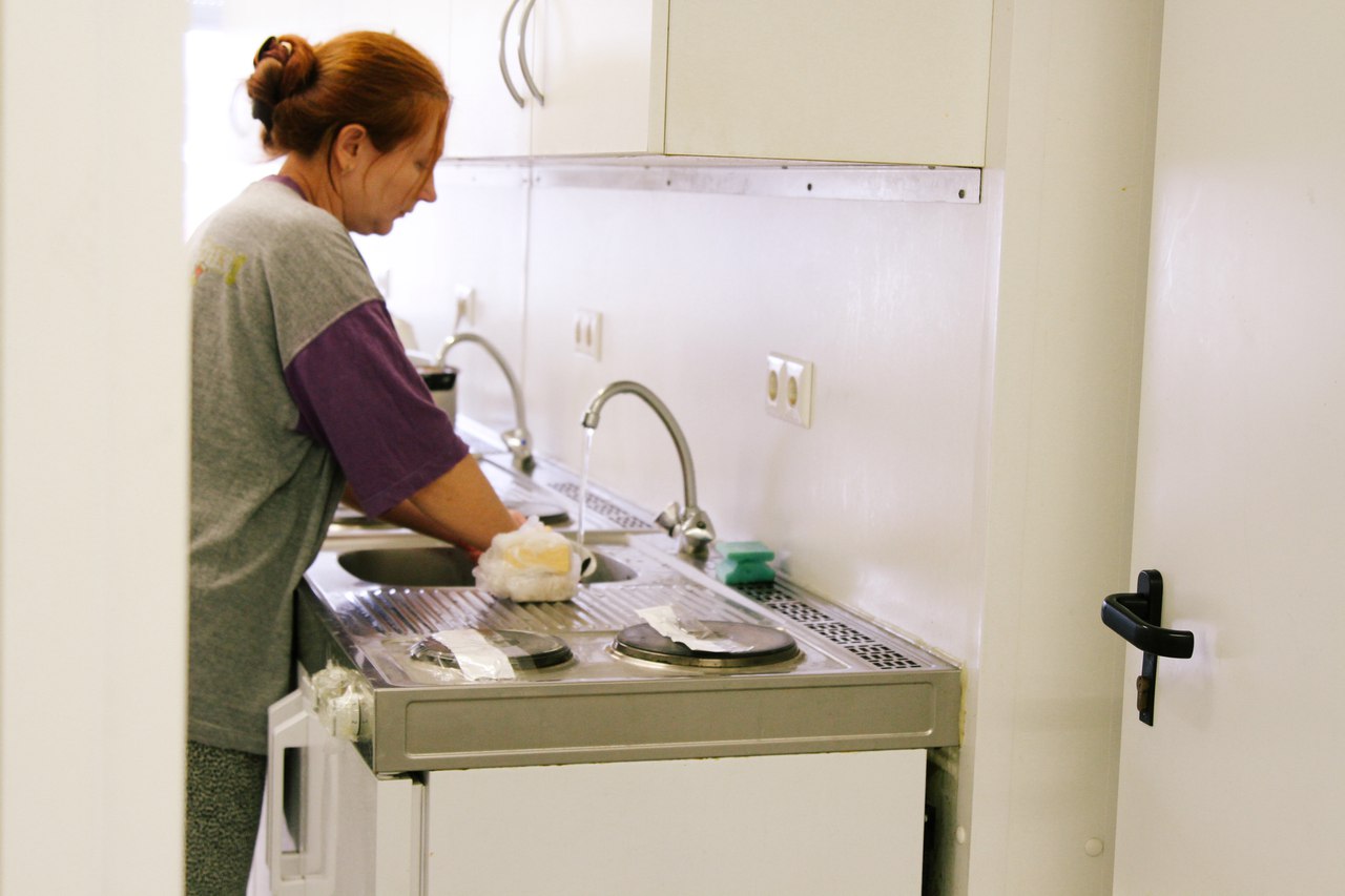 Отвечая на вопрос об условиях в модульном городке, женщина отмахивается: «Да ничего. Слава Богу, хоть так».