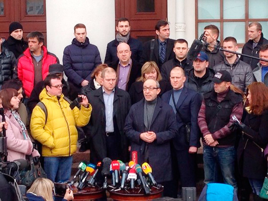 На вопрос о том, как он собирается работать, после смены власти в стране, Харьковский городской голова ответил, что он избран городской громадой Харькова и будет работать на своём рабочем месте, пока у него будут на то полномочия.