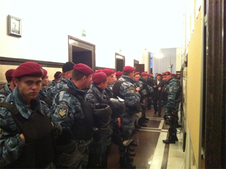 Тем временем в Киевсовете задержали активистку Татьяну Чорновол. Она смогла пробраться сквозь оцепление, и уже в здании её задержали бойцы «Беркута», сообщает «УП».