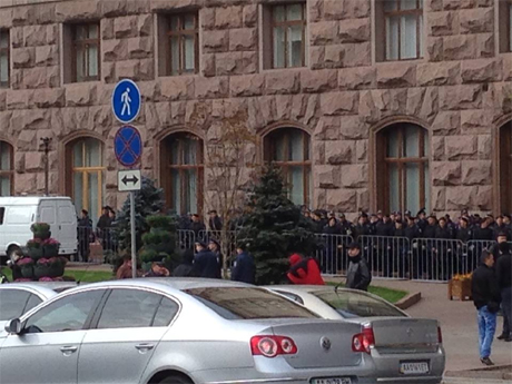 Сегодня утром оппозиционеры пытались прорваться в помещение Киевсовета. Здание Киевской городской государственной администрации окружили сотрудники «Беркута».
