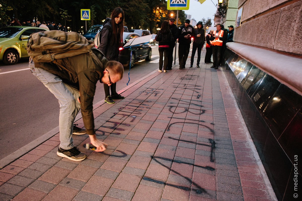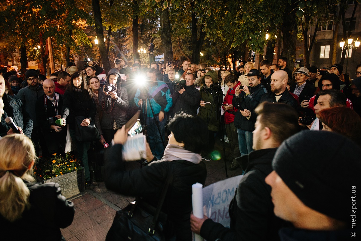 Около сотни людей пришли вечером в четверг, 27 сентября, к зданию Главного управления Нацполиции в Харьковской области с требованием тщательного расследования преступлений против общественников.