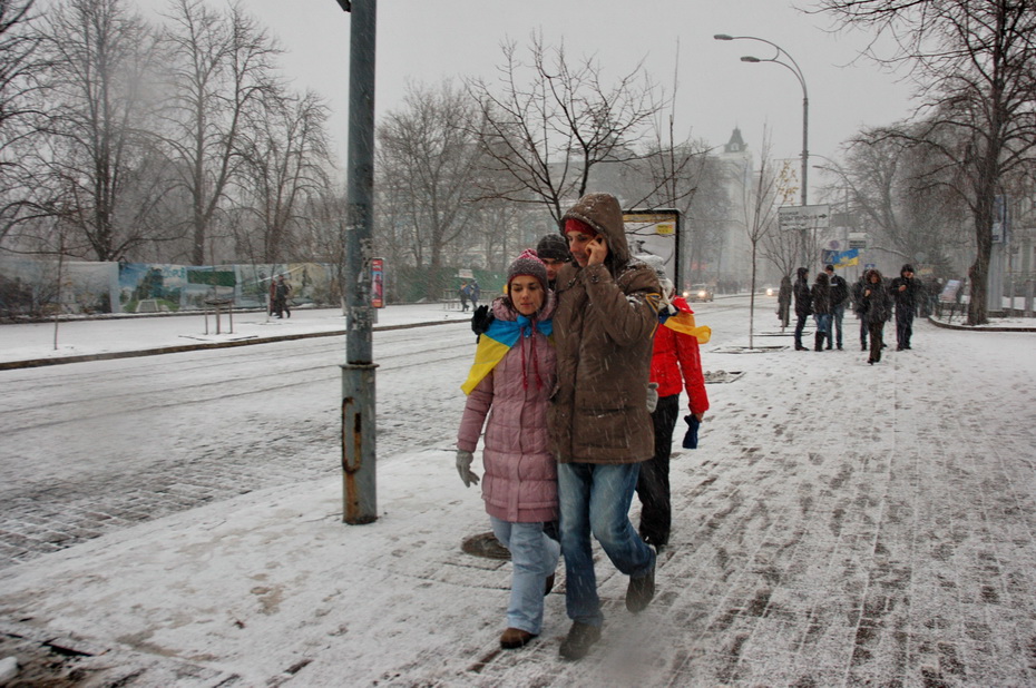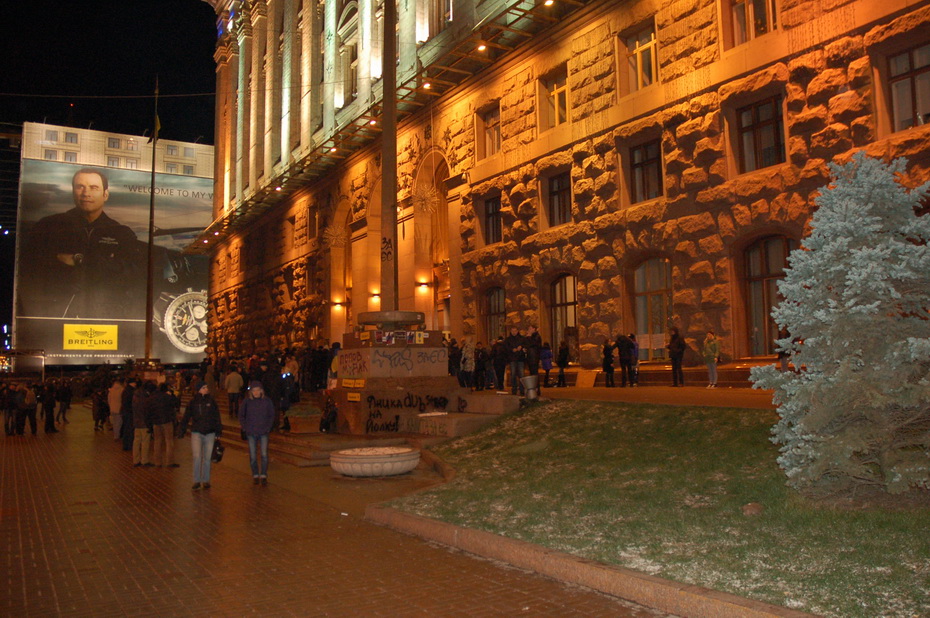 Это была командировка за ощущениями. За атмосферой, запахом, реальностью. Безусловно, сумасшедший информационный поток и так создаёт эффект присутствия, практически 3D. Но мне хотелось. Хотелось слышать, видеть, говорить с людьми. Мёрзнуть, греть руки у костра. Считать шаги от Майдана до Мариинского парка. По Институтской, мимо Банковой. А потом обратно, в захваченный Киевсовет, по дороге заряжая батарею фотоаппарата в штабе-Доме профсоюзов.