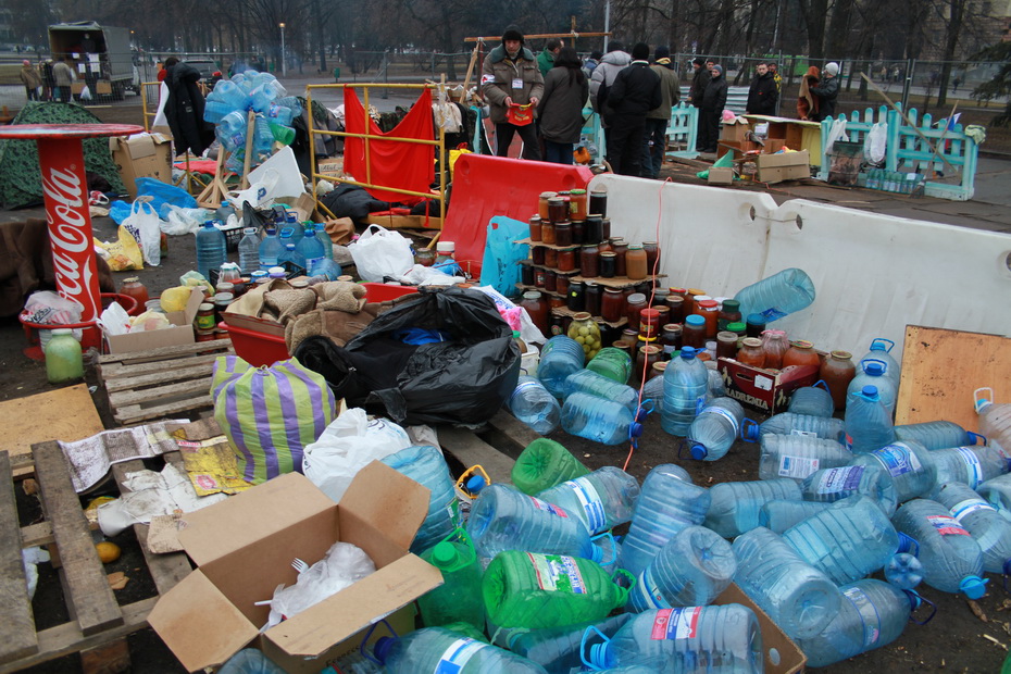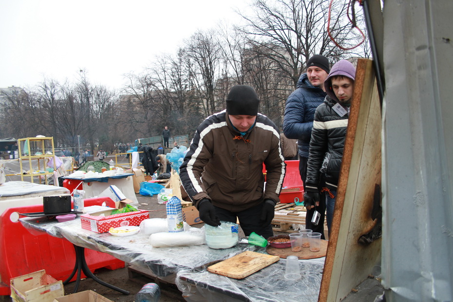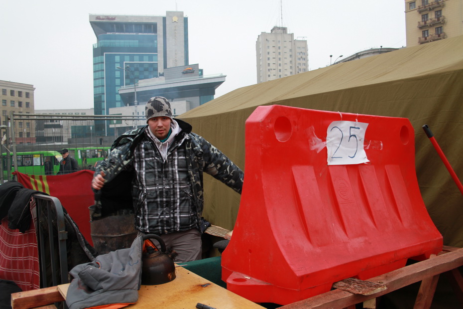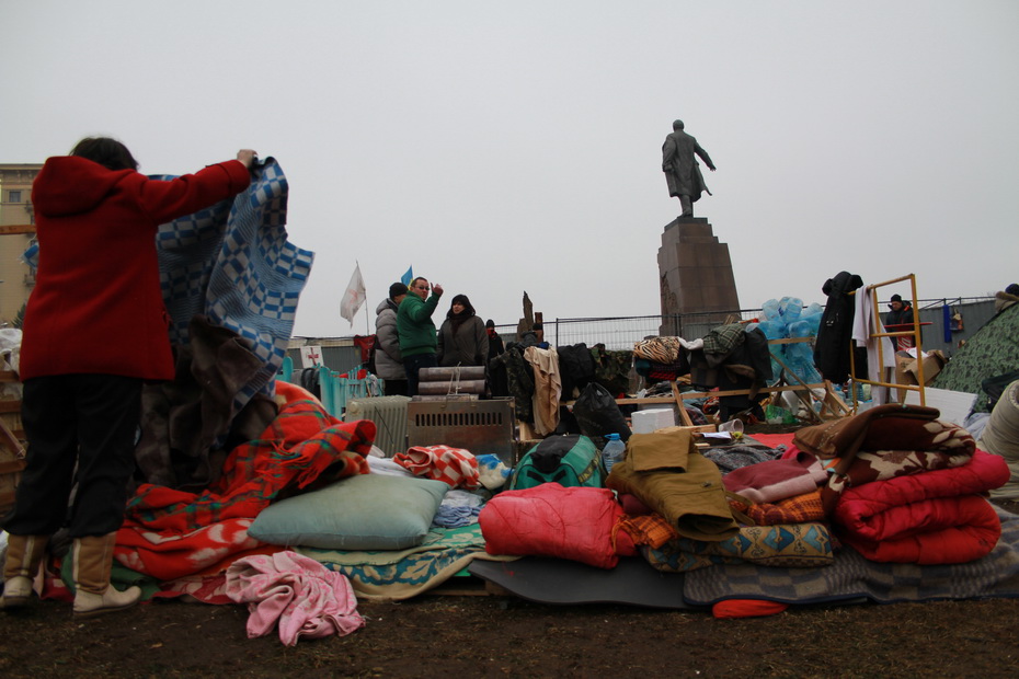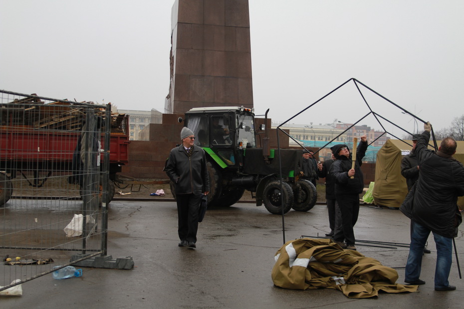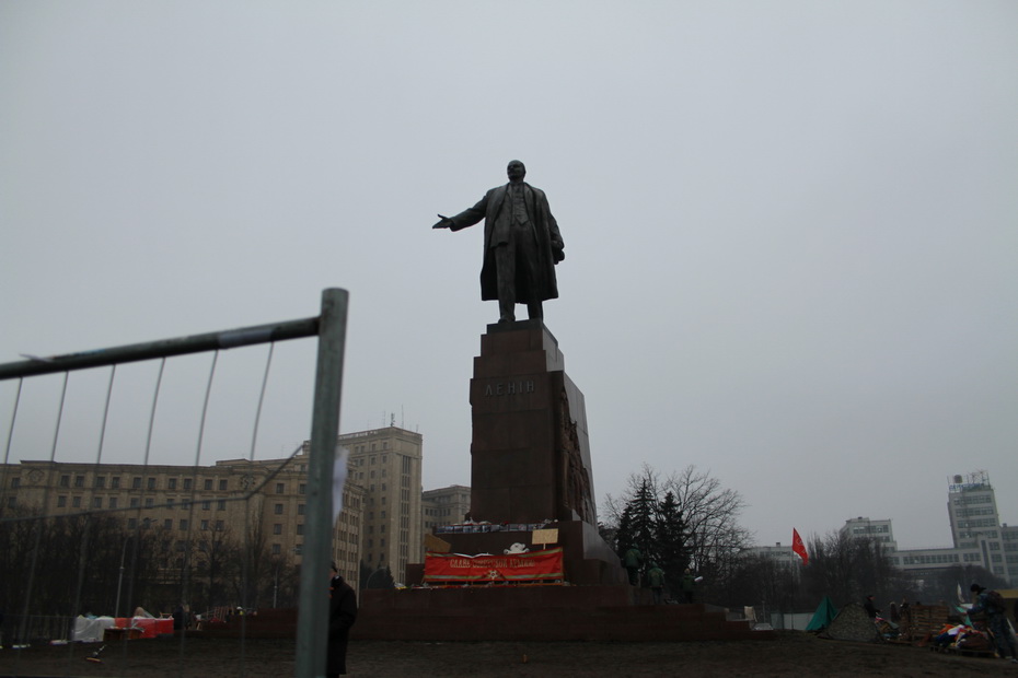 Лагерь у памятника Ленину появился на следующий день после того, как 22 февраля сторонники Евромайдана высказали идею о сносе монумента.