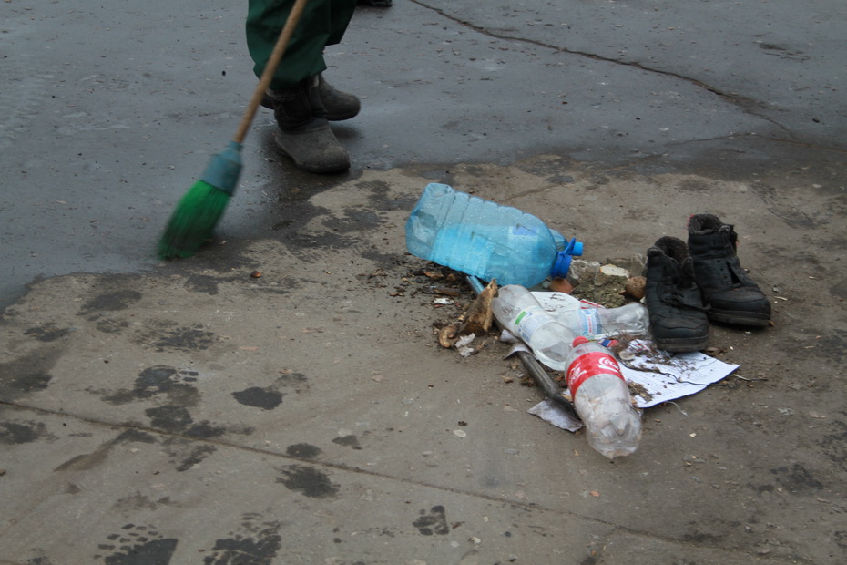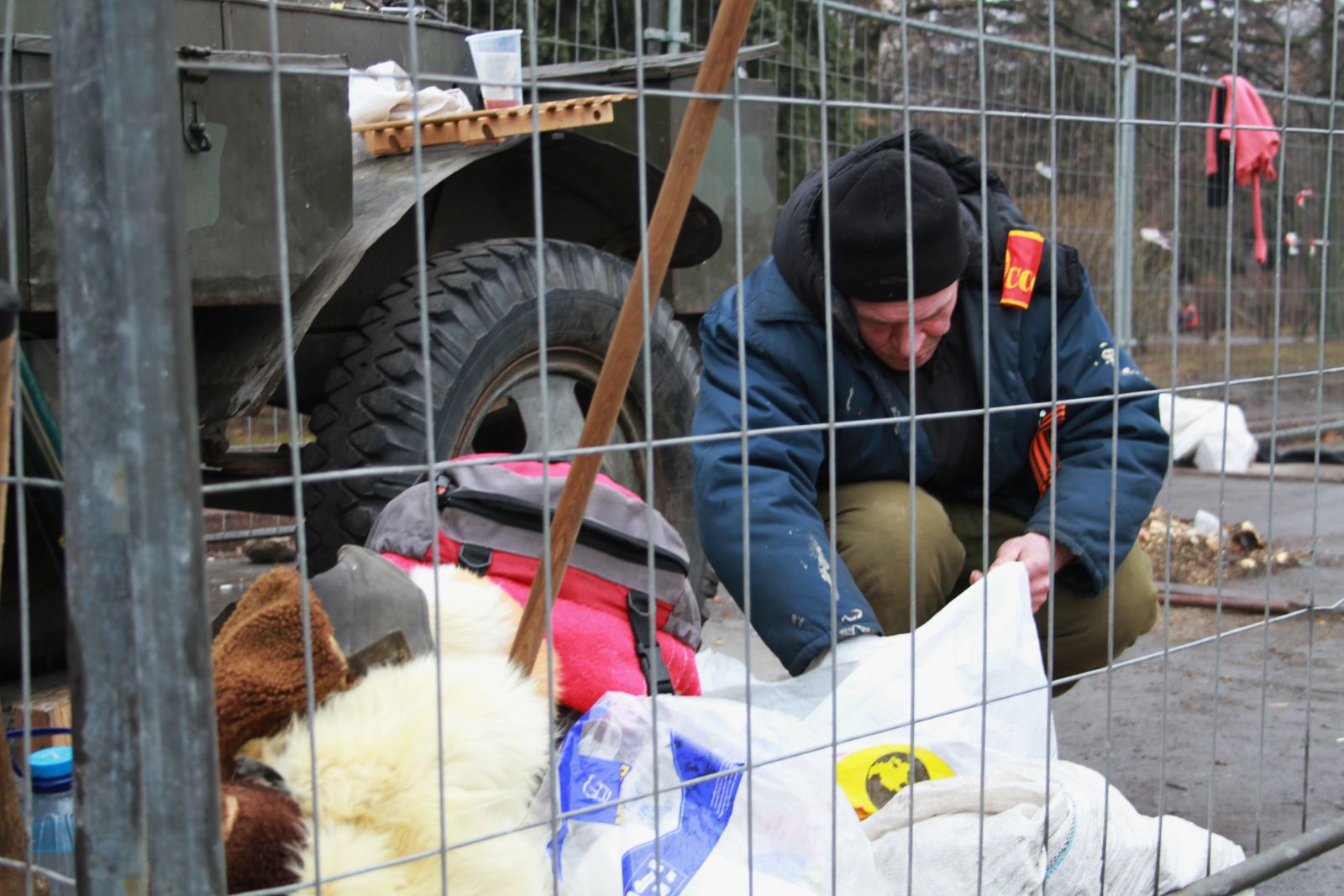 Сегодня с утра в лагере возле памятника Ленину — несколько десятков человек с георгиевскими лентами и коммунальщики. Защитники Ленина сворачивают палатки и пьют чай у ещё не убранных бочек, пакуют вещи и запасы продуктов. Коммунальщики убирают площадку вокруг памятника и выносят мусор.