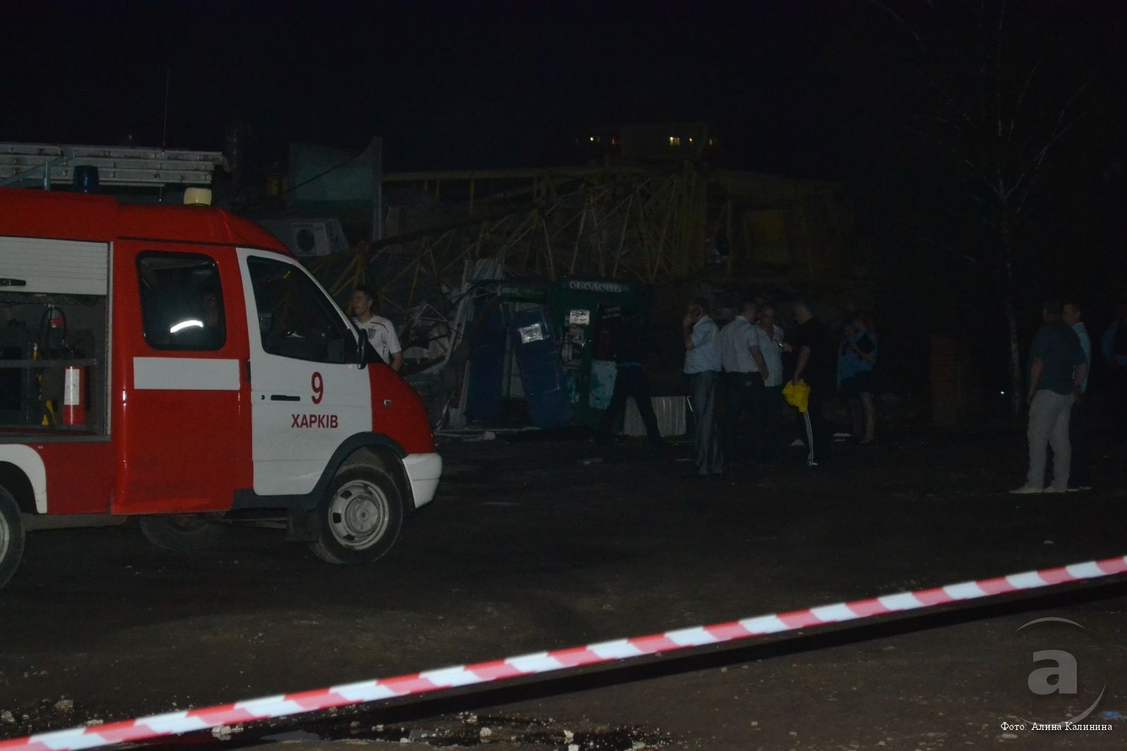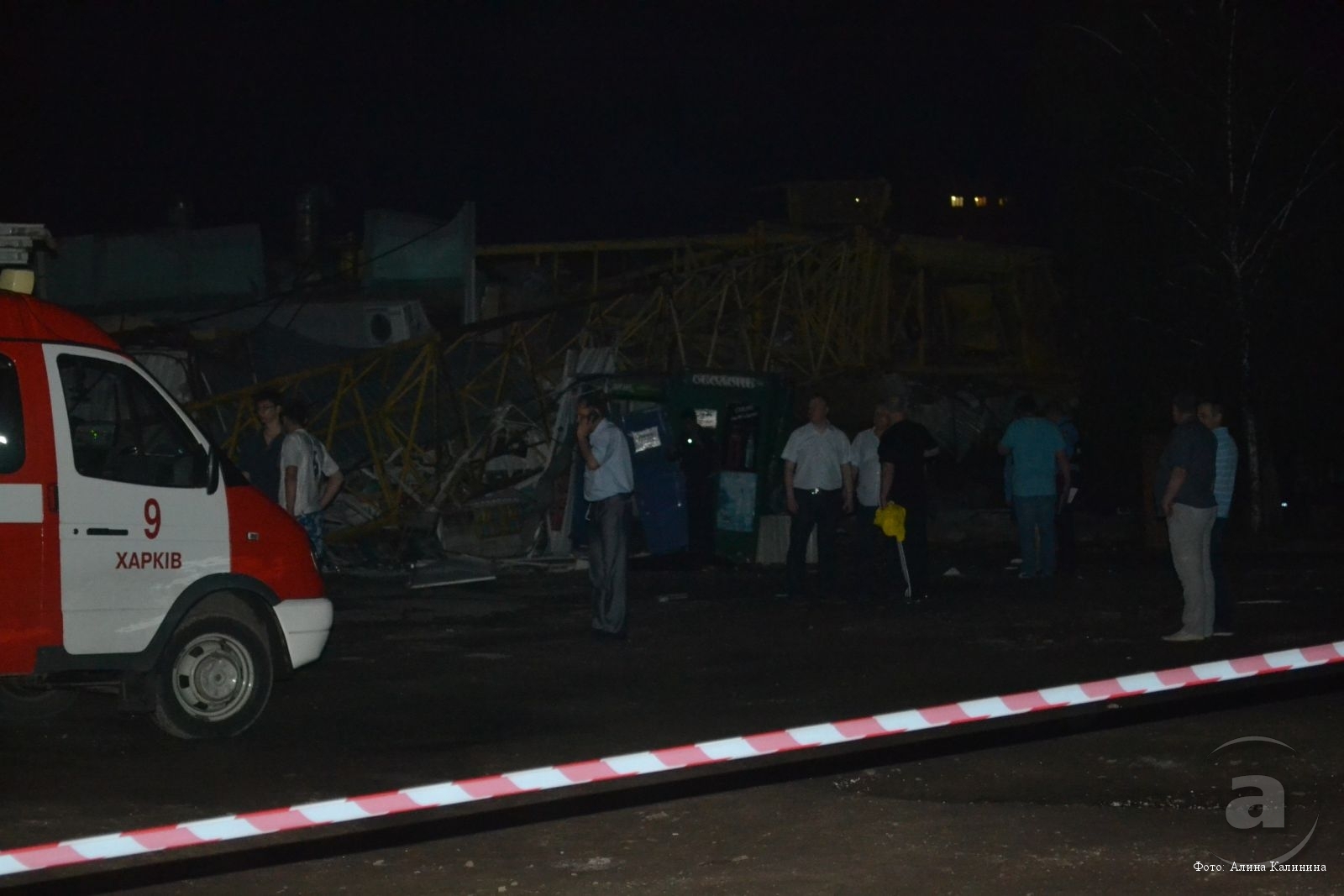 UPD 21.55. По предварительной информации, которую озвучил помощник начальника Главного управления Госслужбы по чрезвычайным ситуациям в Харьковской области Игорь Лупандин, в результате падения крана погиб один человек, четверо пострадали. Пострадавшие отправлены в больницу. Аварийные бригады работают до сих пор. Со стороны ГСЧС задействованы три аварийно-спасательных автомобиля и автоцистерна.