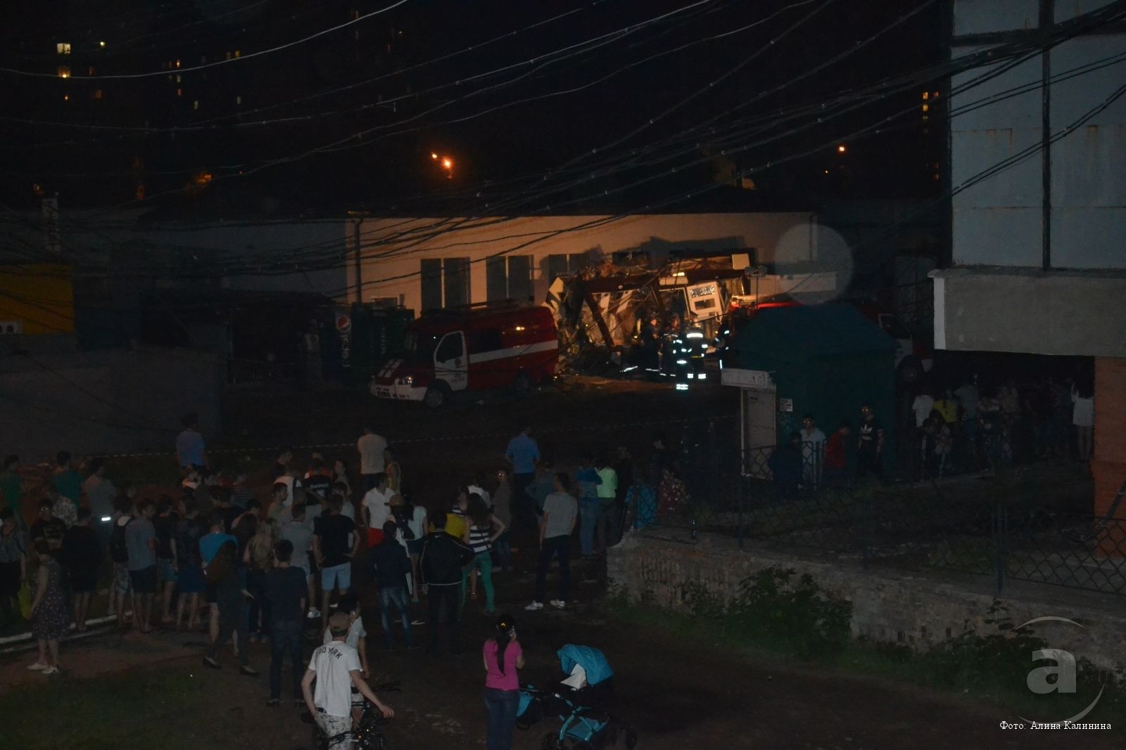 Строительный кран стоял возле недостроенной многоэтажки, рядом с Алексеевским рынком. Он упал на два киоска — по словам Калининой, они полностью смяты. Один из этих киосков — «Кулиничи» — в это время обычно открыт.