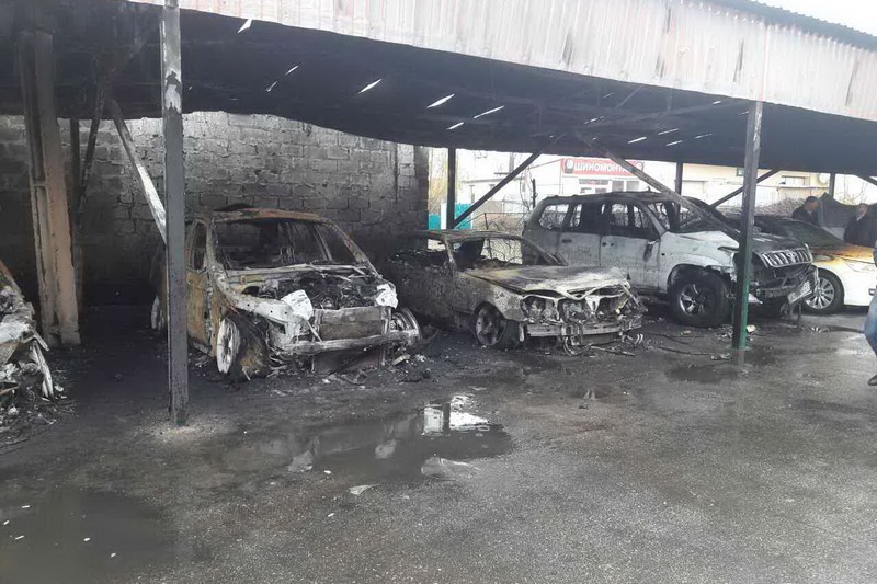 Шесть автомобилей — Toyota Land Cruiser Prado, Lexus 460, Honda Acord, BMW 525, BMW Х5 и Mercedes 400 — начали гореть на автостоянке около полуночи.