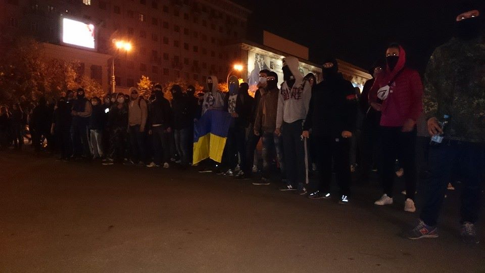 По словам журналиста, около получаса люди в балаклавах бегали по площади и саду Шевченко — как сами говорят, «кошмарили новороссов».