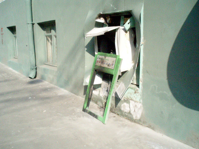 11 февраля неизвестный взорвал банкомат «ПриватБанка» на улице Блюхера, 35/81. Спустя месяц пресс-служба областного УВД сообщила о задержании подозреваемого. По версии милиции, преступление совершил 25-летний харьковчанин, чтобы «заработать» на свадьбу. Пресс-служба облуправления милиции сообщила, что из банкомата «подрывник» похитил 180 тысяч гривень (хотя пресс-служба «ПриватБанка» утверждала, что кассеты с деньгами остались на месте). По собственной информации «МедиаПорта», подозреваемый в подрыве банкомата — действующий военный, поэтому дело против него расследовала военная прокуратура.