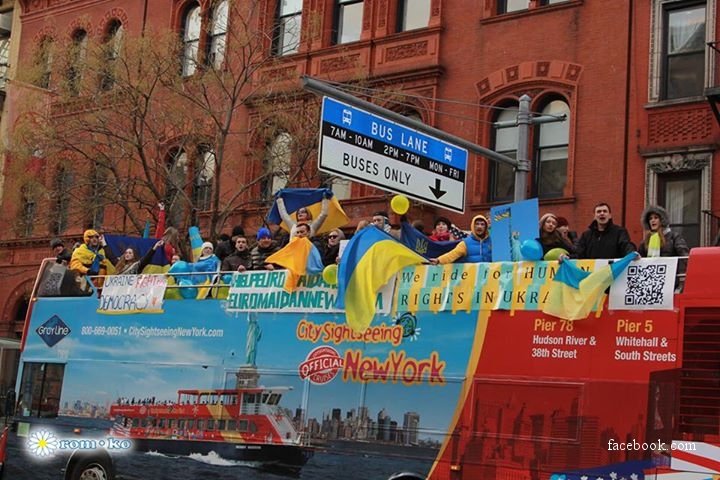 Представители украинской диаспоры Нью-Йорка наняли двухэтажный автобус, чтобы рассказать жителям города о Евромайдане. Во время поездки по городу активисты собирали деньги для киевского Евромайдана.