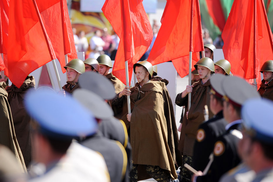 Парад на площади Свободы: начали с джипа — закончили лошадью
