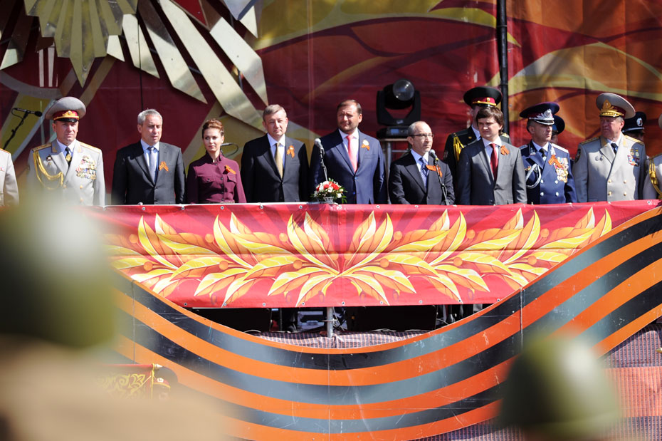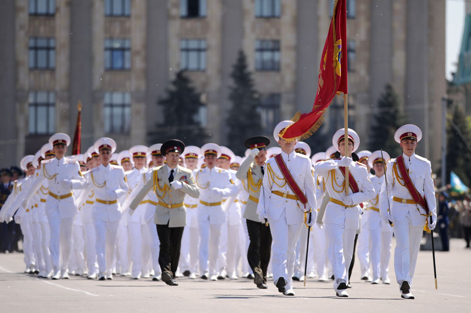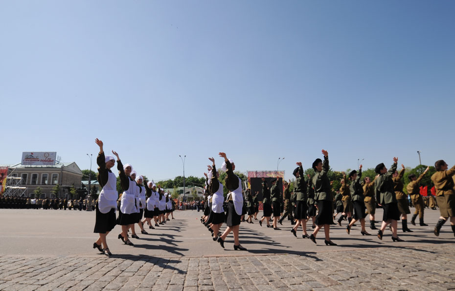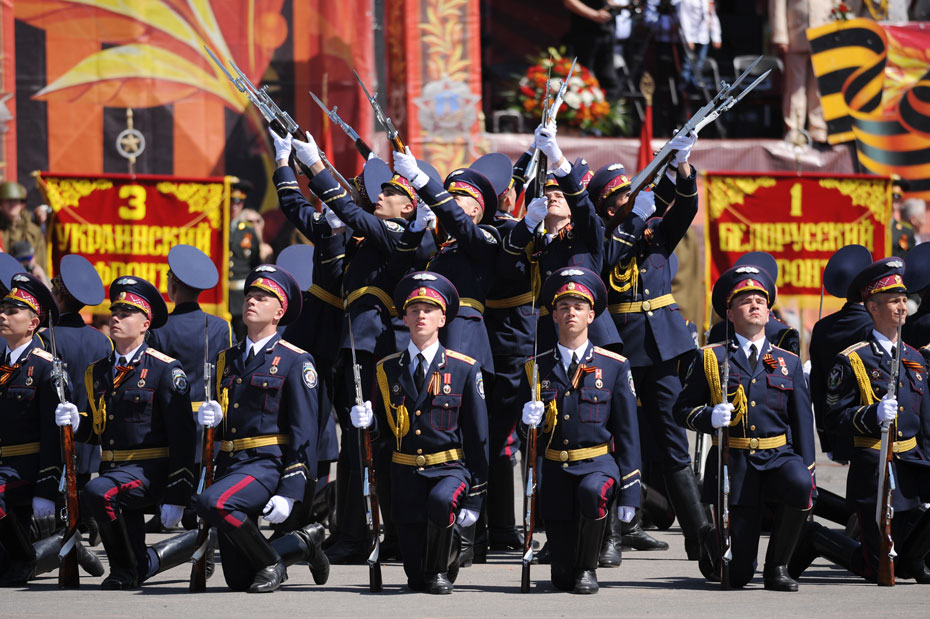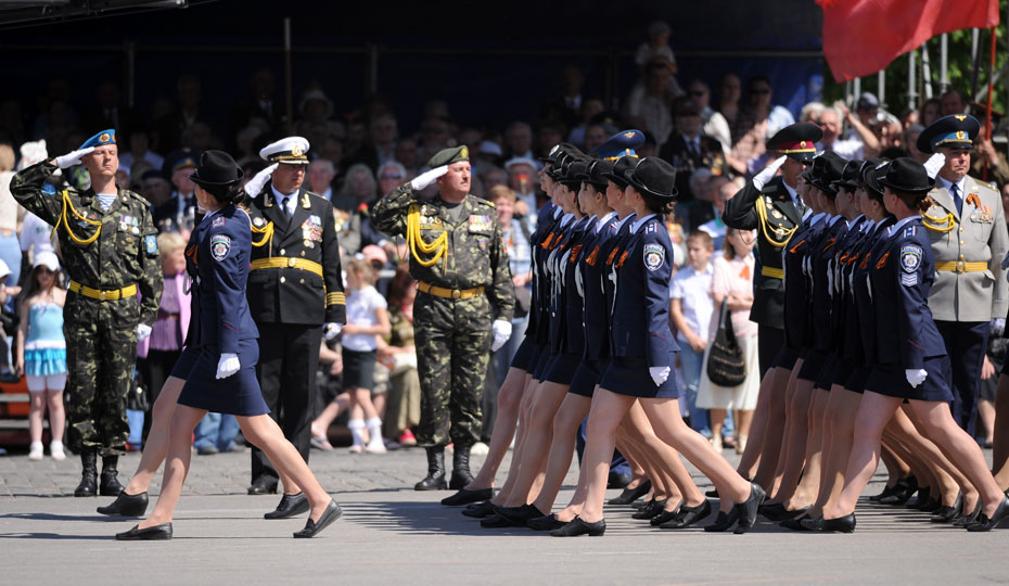 Сегодня на площади Свободы прошло военно-театрализованное представление в честь 68-летия Дня Победы. В прохождении войск участвовали военные из Харьковского, Днепропетровского, Львовского, Севастопольского гарнизонов, а также курсанты из Воронежа.