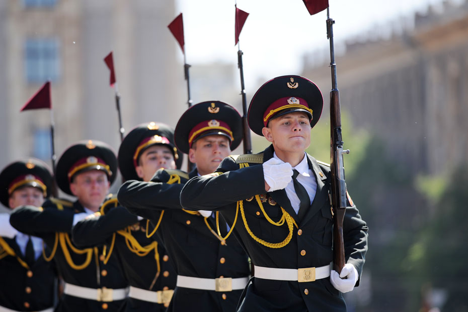 В параде приняли участие харьковские пограничники, курсанты Академии внутренних войск Украины, Харьковского национального университета внутренних дел, Национального университета гражданской защиты, Академии военно-морских сил Украины имени Нахимова (Севастополь), курсанты десантных войск (город Новомосковск, Днепропетровская область), Академии сухопутных войск имени Сагайдачного (Львов), а также курсанты Воронежского военного учебно-научного центра ВВС Военно-Воздушной академии (Россия).