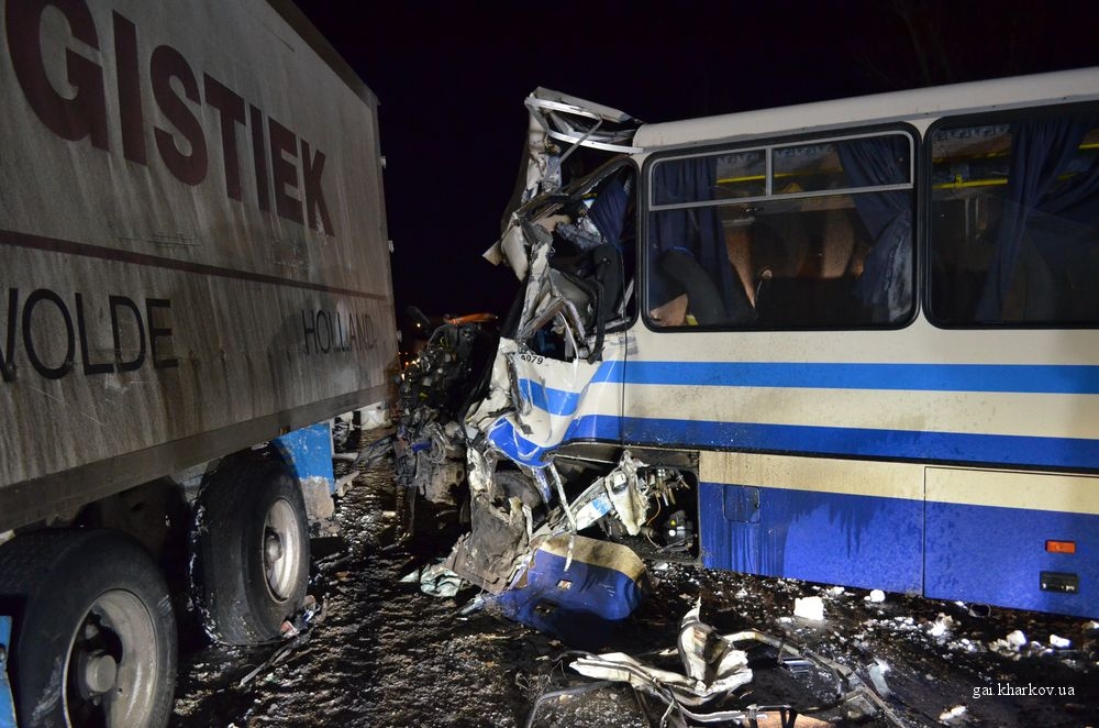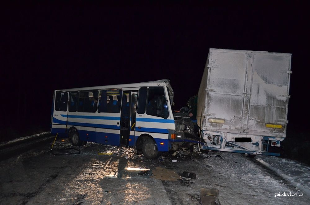 На автодороге Мерефа — Павлоград 10 декабря вечером столкнулись пассажирский автобус и грузовик. По данным областного управления ГАИ, автобус выехал на встречную полосу.