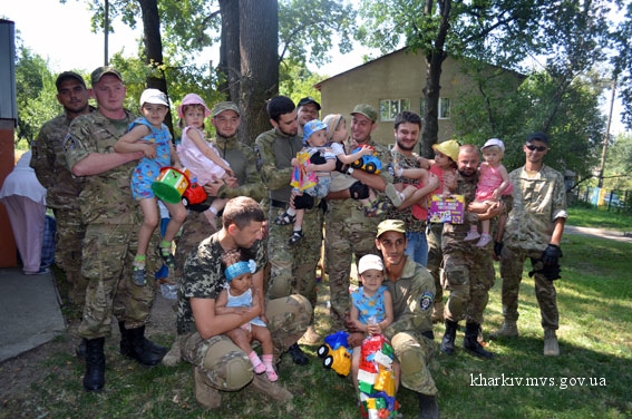 Бойцы батальона «Киев-1» посетили областной специализированный дом ребёнка «Зелёный гай» в посёлке Высоком Харьковской области. В детдом они наведались, возвращаясь из отпуска в зону антитеррористической операции.