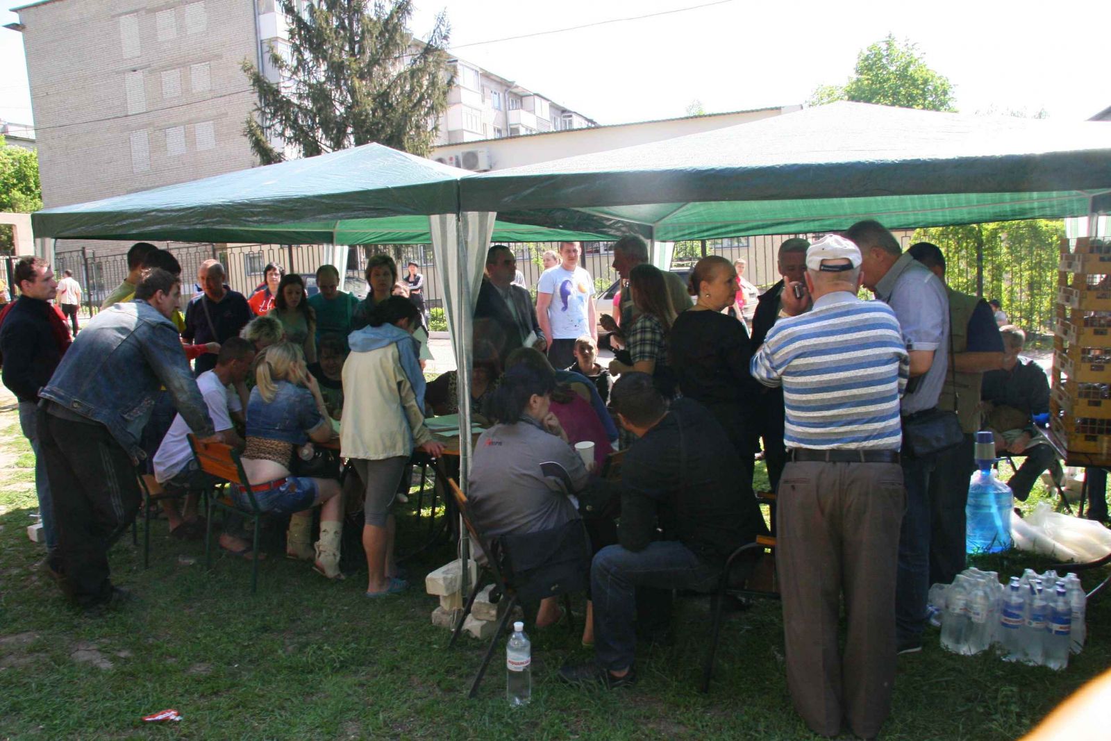 Возле общежития развернули палатки для помощи жильцам. С людьми работают психологи.