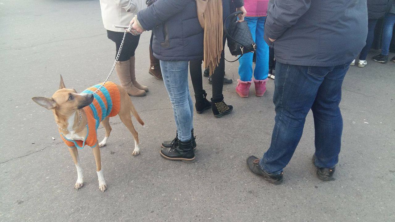 «Выгнала бы её в куда-то в центр, поставила бы на колени, облепила котами и заставила бы извиняться прилюдно. Чтобы ей было так же больно, как было тому животному», — Аня, сама совсем юная девушка, «сдавать подпись» пришла с чёрным шарпеем Тайсоном. И это был не единственный пёс-участник акции. Хозяева специально брали с собой питомцев, как бы показывая: зло — не в собаке.