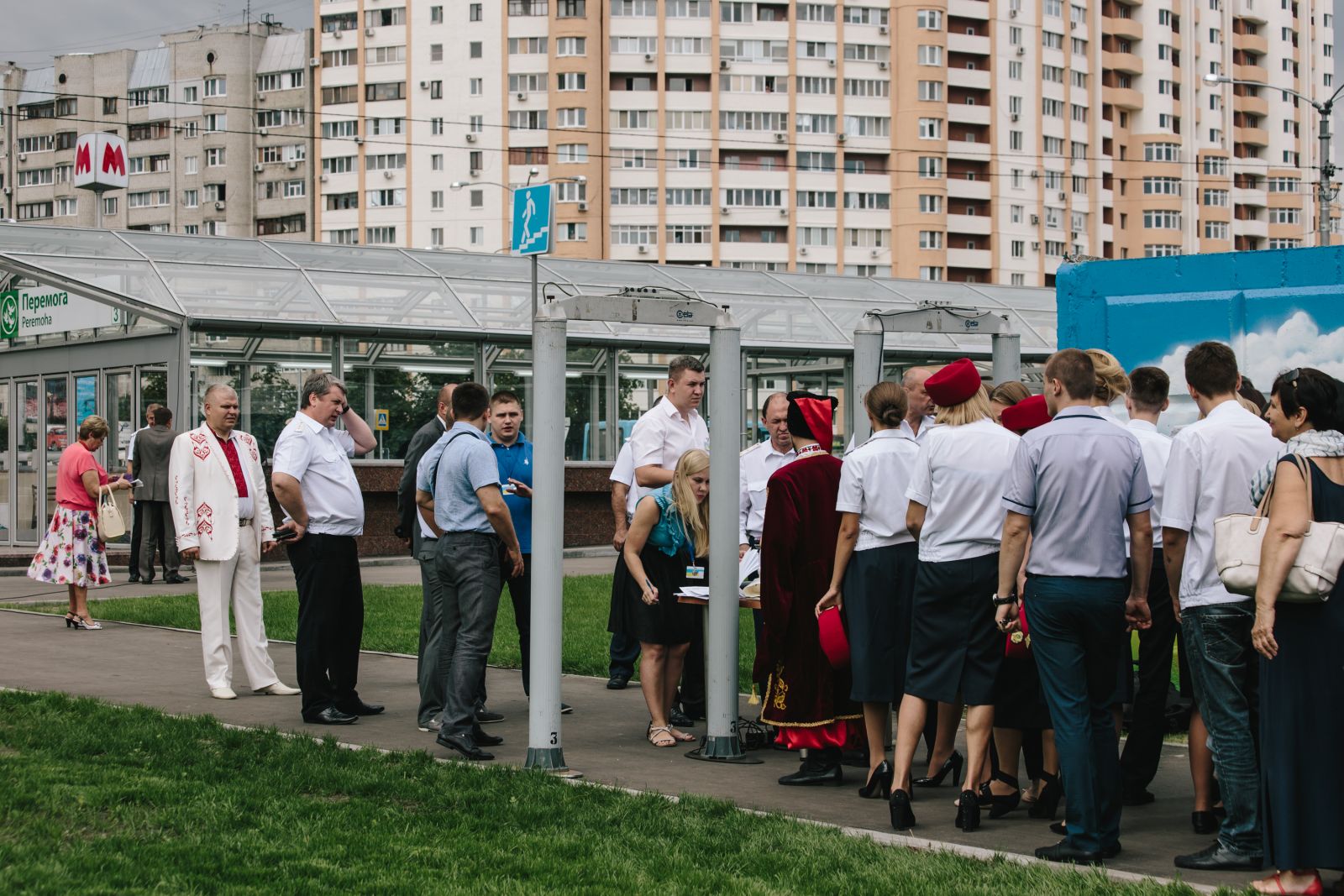 Жителей микрорайона на станции не было. Большинство толпилось на поверхности, через дорогу от «рамок»-металлодетекторов, в то время как глава государства произносил речь.