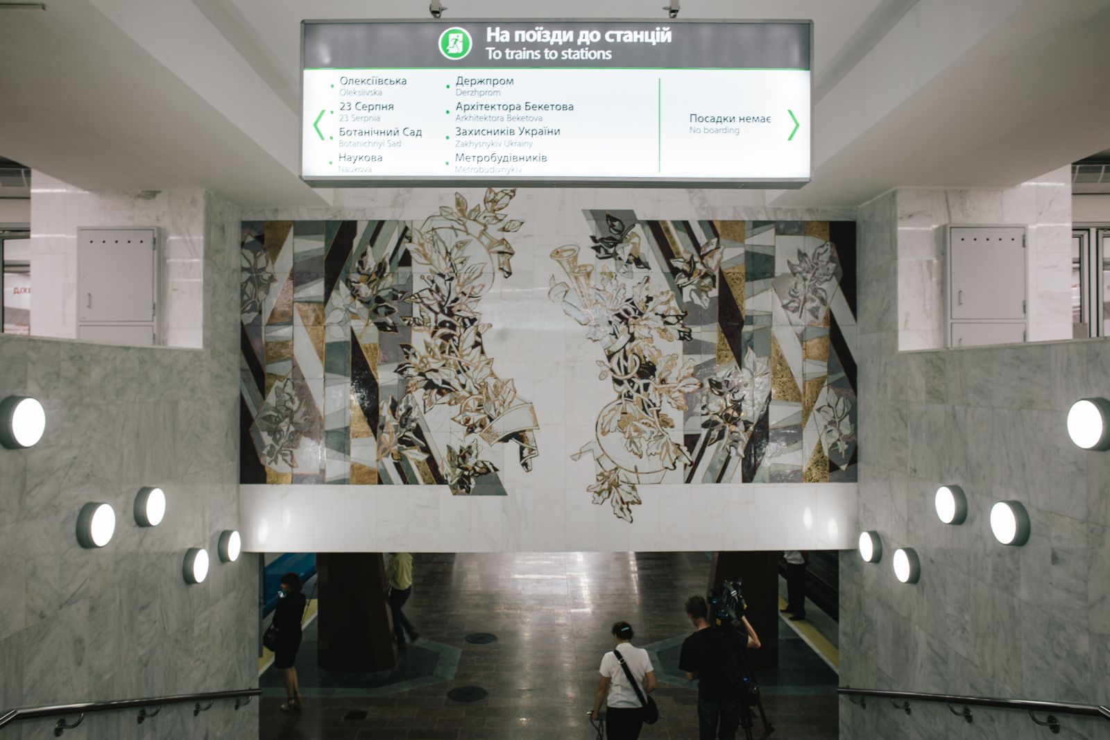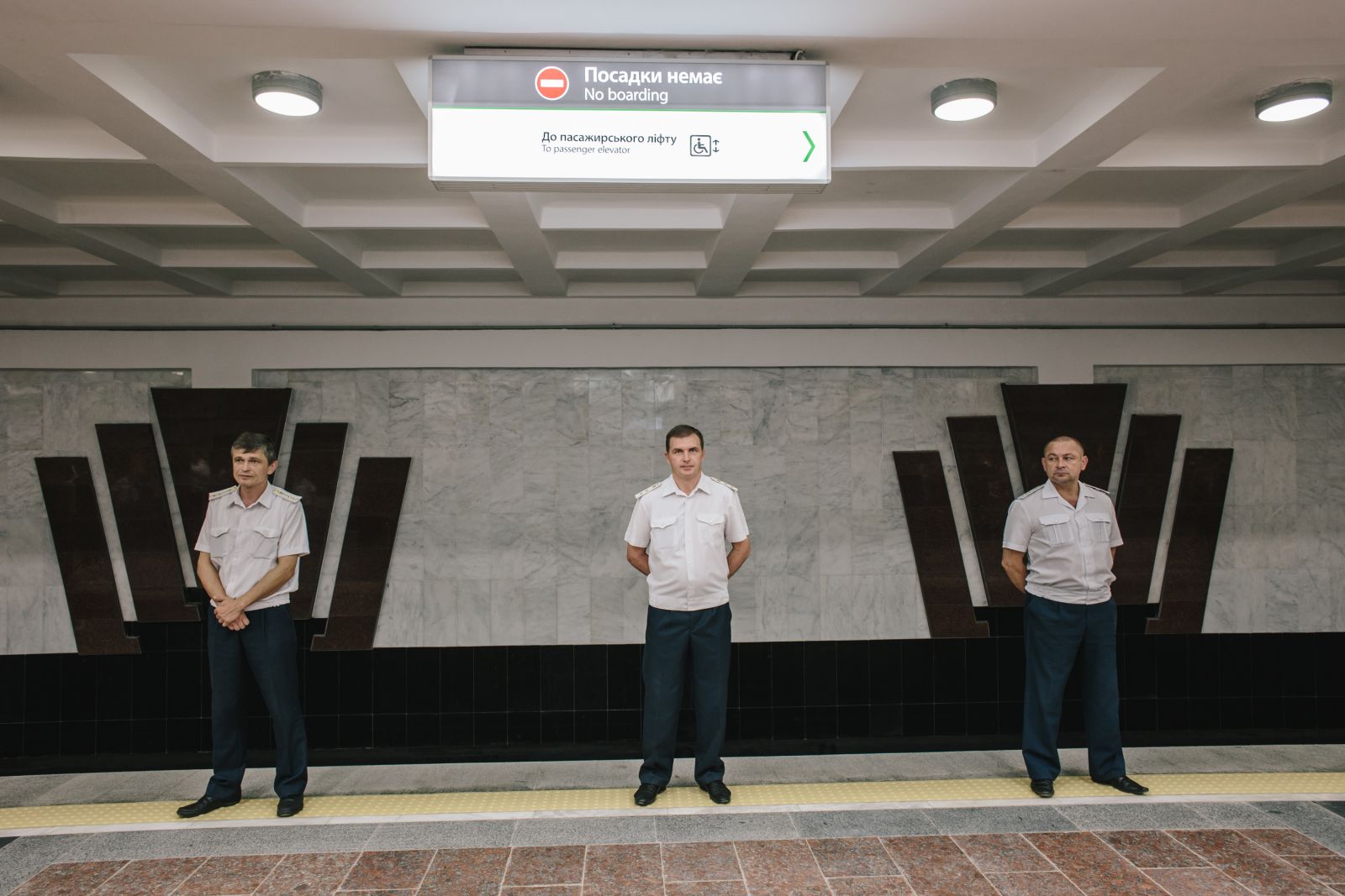 Длинный провод от аппаратуры заботливо приклеили скотчем к плитке крест-накрест. Суетился бывший мэр Харькова и экс-начальник подземки Михаил Пилипчук. Лифт для инвалидов поднимался и опускался. По краю платформы виднелись рельефные ограничители для незрячих. Было время рассмотреть детали — президент опаздывал.