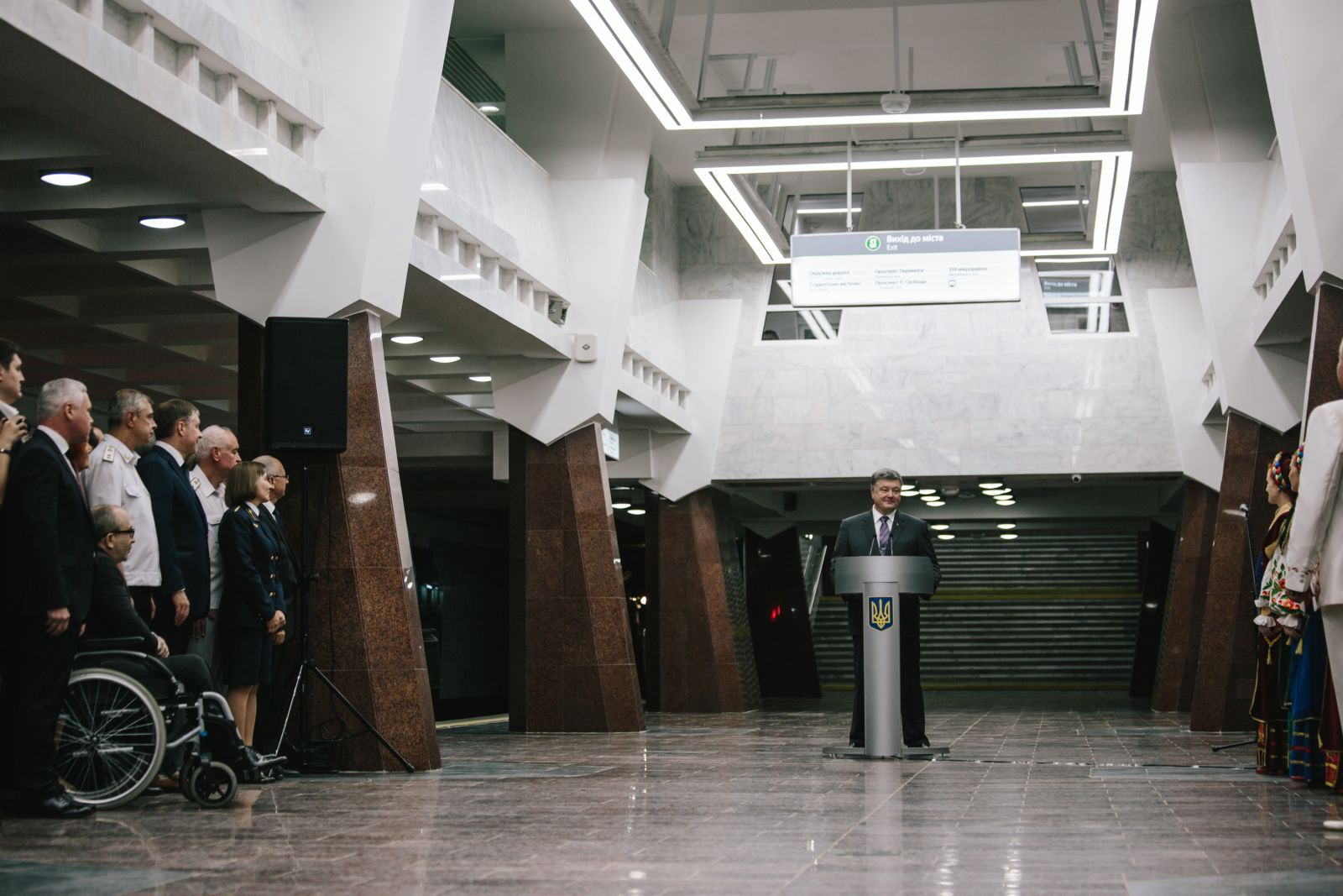 Ещё несколько минут он говорил об инвестициях, подъёме экономики, безвизовом режиме «в считанные недели». Обещал, что метро будет строиться дальше, вручил государственные награды, поздравил всех и ушёл. А через несколько минут внезапно вернулся с народом.