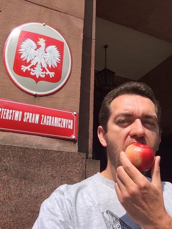 Россия с первого августа запретила ввоз польских фруктов и овощей. На эмбарго поляки отреагировали флешмобом: в соцсетях они выкладывают фотографии с надкушенными яблоками. Акция получила название «Съешь яблоко против Путина».