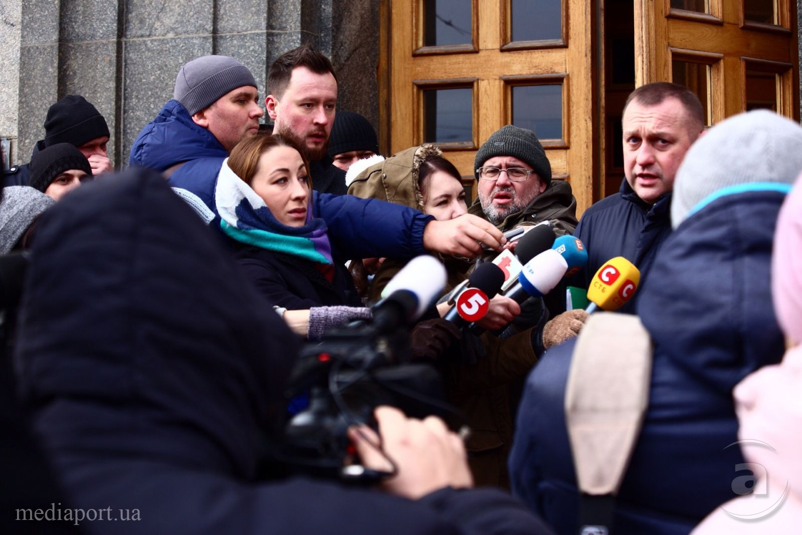 К участникам акции возле Харьковского горсовета вышел заместитель Харьковского городского головы Андрей Руденко.