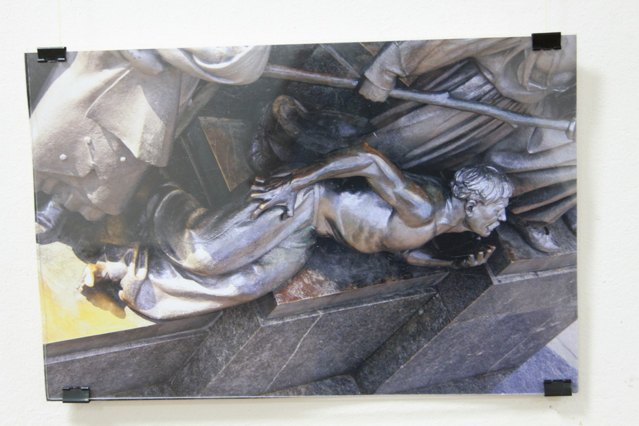 «Работы западных скульпторов, выполненные в стиле конструктивизма, не содержали даже намёка на фигуру. Это были шары и диски, пересекающие друг друга под разными углами. Исключение составили, пожалуй, только французы, представившие Тараса взбирающимся к Господу Богу в сопровождении двух ангелов с серпом и молотом в руках, и поляки, изобразившие его в одежде шляхтича с типично шляхетским жестом».