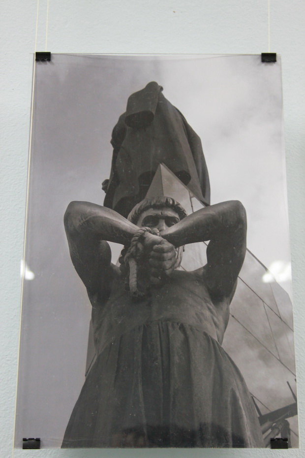 Фотографа впечатлил кадр из короткометражного фильма об открытии памятника — там Наталья Ужвий смотрит на скульптуру со своим лицом.