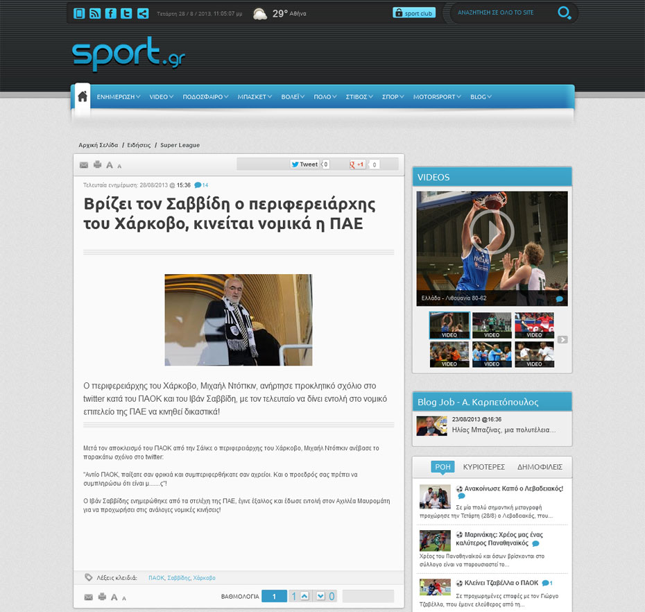 «Префект Харькова Майкл Добкин разместил провокационные комментарии в Twitter против ПАОКа и Ивана Саввиди. Последний дал команду юридическому персоналу клуба обратиться в суд.