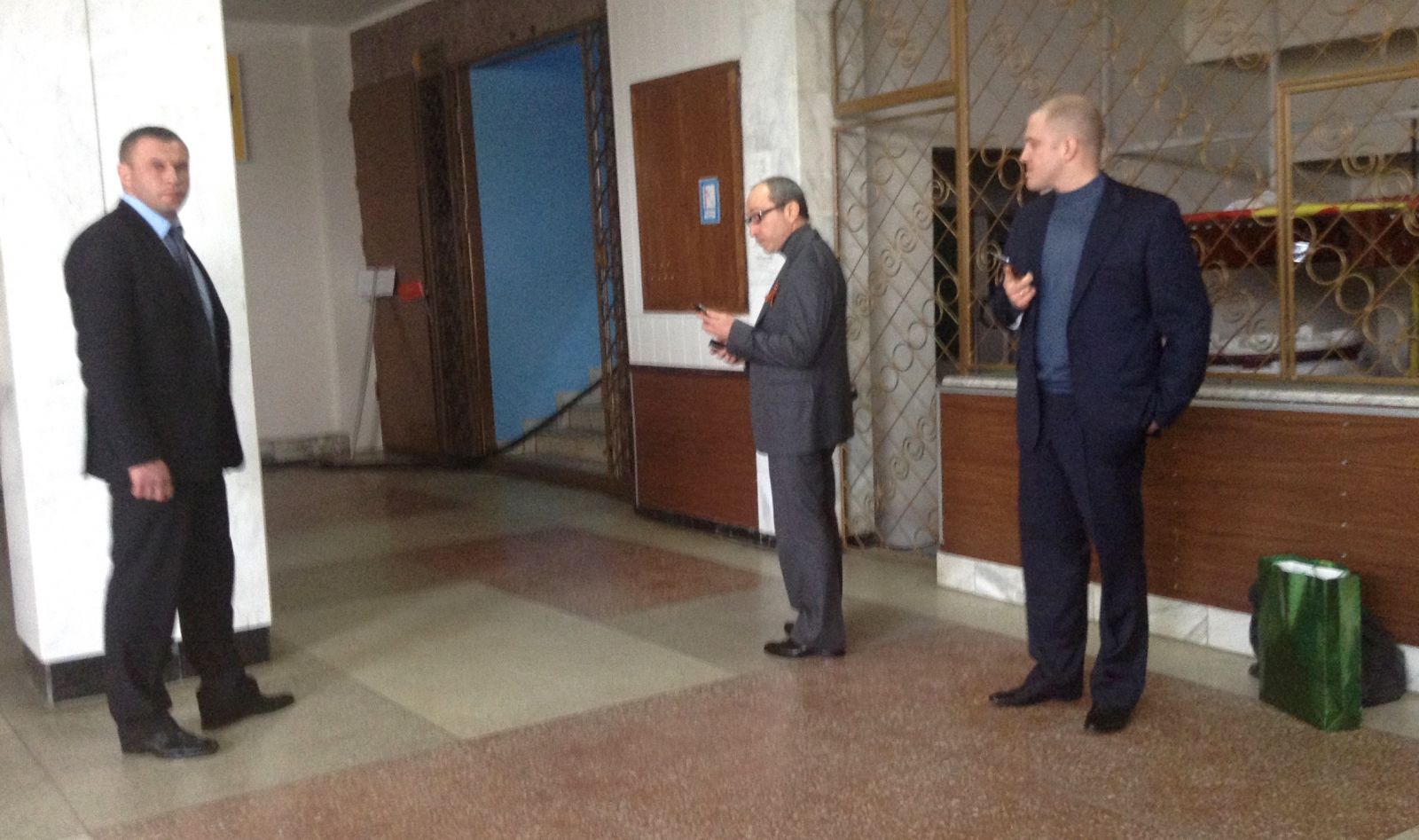 11.40 Участники съезда рассаживаются в зале.  Появились делегации из Донецкой и Харьковской области и из Севастополя. Много чиновников Харьковского горсовета. Из колонок негромко играет музыка. В данный момент — Владимир Высоцкий.
